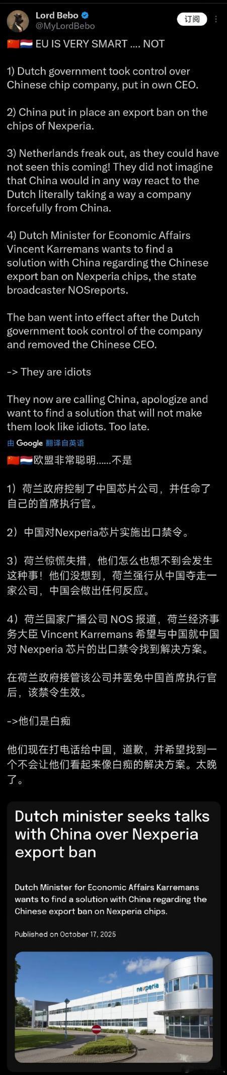 很好,正式切割!让海盗们抢了个寂寞,然后再付出相应的代价……这一切,都是为了我们海外资产今后的安全。 最近安世中国这事儿,其实逻辑挺清楚的,首先得明确,安世中国发声明说荷兰总部的相关决定在国内没法律效力,这不是随便说说,是有法律依据的。 咱们国家法律有规定,境外机构的决定要在国内生效,得符合中国的法律框架,不能说那边拍板了,这边就得认,哪有那道理。 之前有人担心,要是荷兰总部那边瞎折腾,会不会影响到安世中国在国内的业务,进而波及咱们的海外资产。 现在看,这份声明就是给所有人吃了颗定心丸,所谓“正式切割”,不是说彻底断开关系。 而是在法律层面划清界限,让那些想趁机搞事情的“海盗”,也就是那些想借着总部名义占便宜、损害咱们资产的人,根本没机会下手,最后只能抢个寂寞。 为啥要这么做?核心还是为了海外资产的安全,现在咱们企业走出去多了,海外资产越来越多,要是连境外机构的不当决定都没法抵制,那资产安全就没保障了。 安世中国这步棋,其实是给其他有海外业务的中国企业打了个样:遇到境外总部或者关联机构的决定不符合国内法律、可能损害自身利益时,就得明确站出来,用法律武器维护自己的权益。 而且这声明也传递了一个信号,中国企业在海外发展,既要遵守当地规则,也要守住自己的底线,国内的法律尊严和企业的合法权益不容侵犯。 那些觉得能在境外搞点小动作就影响到国内业务的人,也该醒醒了,这种“空房子里嗨”的做法,根本起不了任何作用,最后要是真损害了企业利益,还得付出相应的代价。 对于这件事情,大家有什么看法?