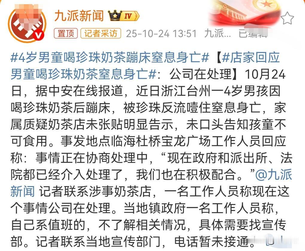 这可真是悲催。 近日浙江台州,一名4为男童喝珍珠奶茶后蹦床,结果奶茶反流窒息身亡。 孩子的母亲和店员都不会那个急救法,孩子最终去世。 家长就要找店家的麻烦了,说店家没有告知4岁的孩童不能喝这个。 很多人都觉得店家太冤了,难道家长不知道不要给年幼的孩子喝这种珍珠奶茶吗? 我个人觉得门店没有责任。 我认为就算店家也有责任,那也只是小部分责任,不用赔太多,最多赔一点钱。很大原因是孩子的家长还带去蹦床。 家长要负主要责任。