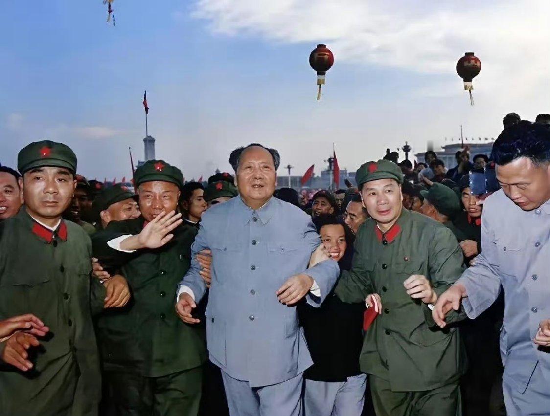 1966年10月庆典,毛主席走下城楼,准备与群众们一起庆祝,杨成武和萧华两位上将开路,与民同乐
