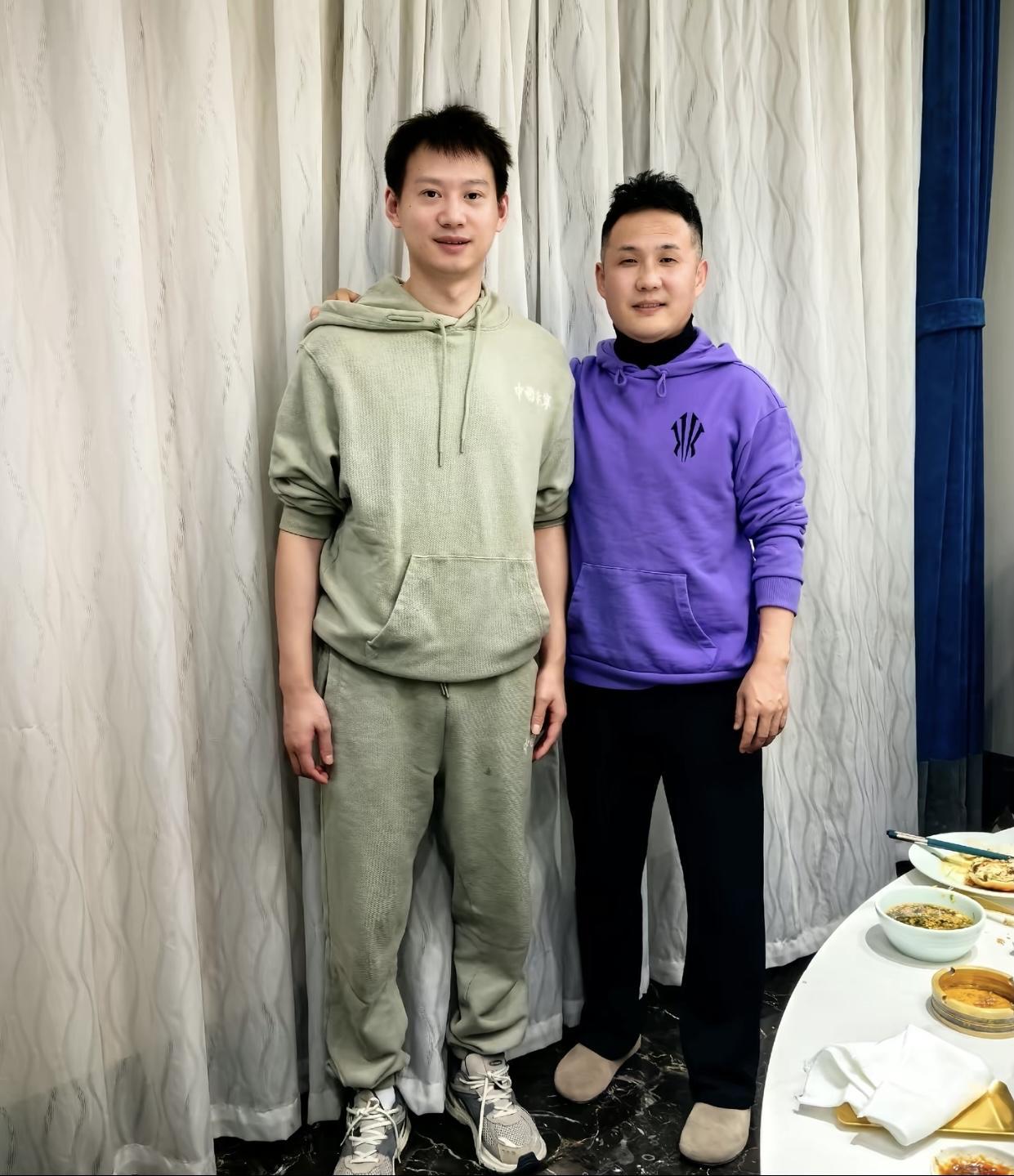 梁靖崑,周雨最新合照,在正定聚餐 甜甜他们已经回到正定好几天了,每天都在备战全运, 每天也都有甜甜的训练视频发出来, 是雷神发出的。 这是昨天晚上男队的聚餐合照,目前还没凑齐5个人, 只看到了男队的4个人, 周雨直播的时候也说,第五个人他还不知道是谁, 那就是第五个人凑一下人数吧, 应该不会上场了。 甜甜帅帅的, 训练加油哦。 莎莎今天也已经到正定,和coco在一起,还有小杨。