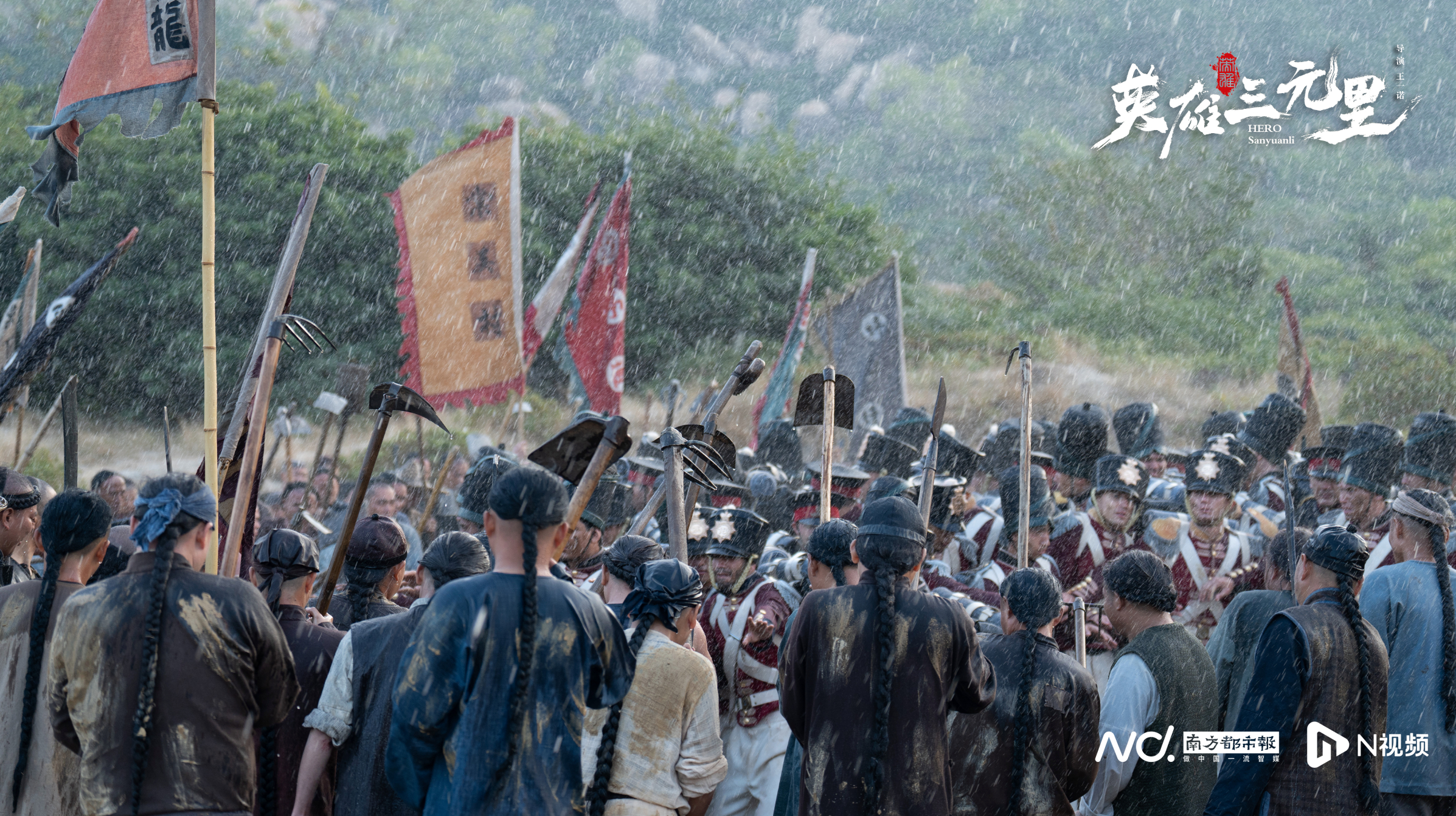 南都N视频记者了解到,影片以1841年三元里抗英斗争为背景,通过艺术创作,重现了菜农韦绍光因妻受辱、由“护家”到“卫国”的觉醒之路;刻画了士绅何玉成振臂一呼、集结乡民的担当气概。影片摒弃“超级英雄”式叙事,聚焦农民、手工业者、妇女、乡绅等普通人的群像刻画,在国难面前挺身而出,他们没有正规军编制,没有精良装备,却凭着“旗进人进,旗退人退,打死无怨”的信念,在牛栏岗设伏。一场突如其来的暴雨让英军火器失效,民众趁势以锄头、镰刀发起冲锋,最终逼退侵略者。