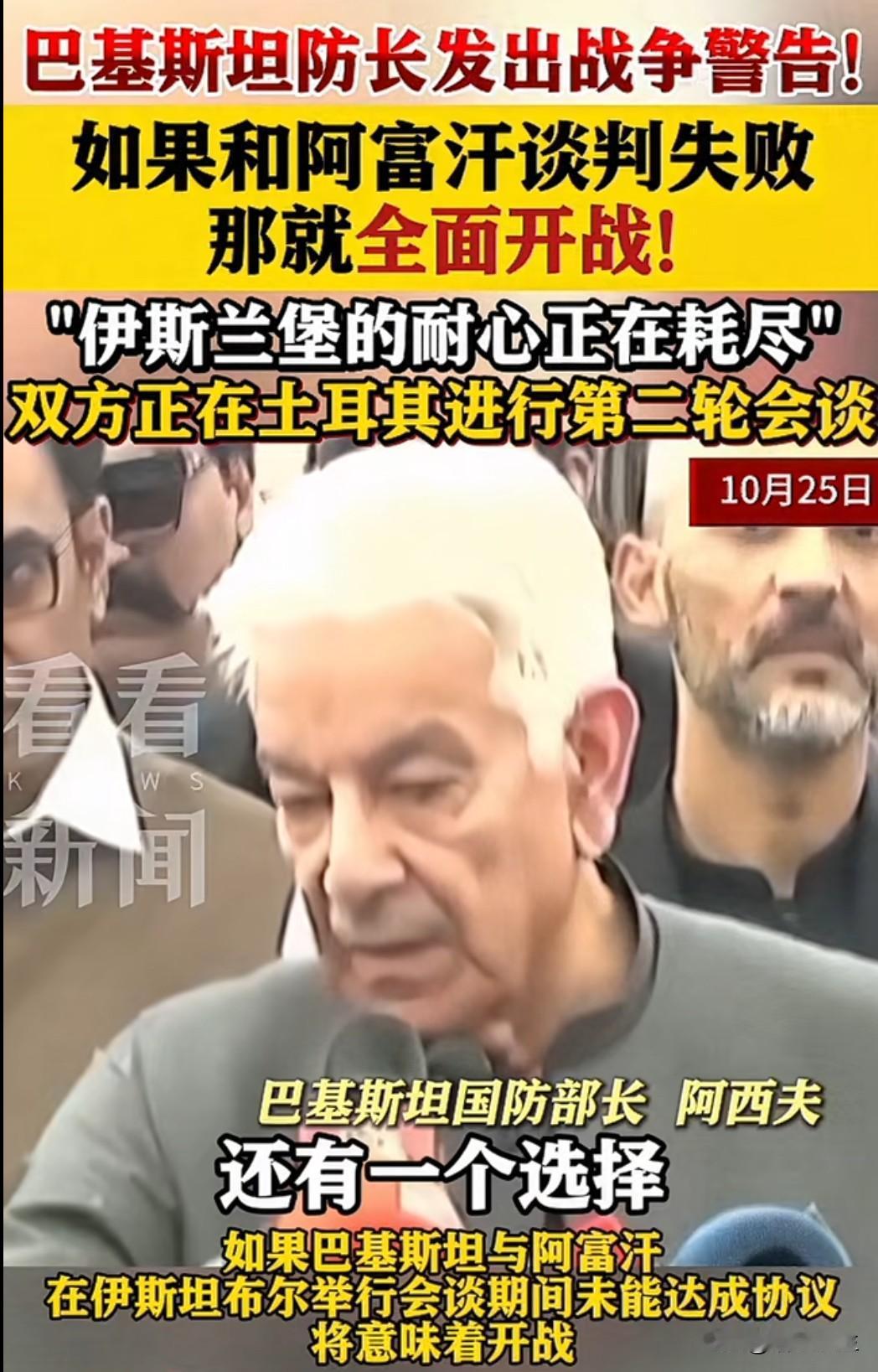 巴基斯坦警告阿富汗 边界争议或引发全面战争 巴基斯坦外交部今日发出严厉警告,称若与阿富汗未能就边境问题达成协议,两国可能陷入全面战争。近期两国在边境地区的冲突已造成数十人伤亡。据悉,双方主要争议集中在边境管控和跨境恐怖主义问题上。国际社会呼吁双方保持克制,通过对话解决分歧。联合国已表示将派遣特使斡旋。