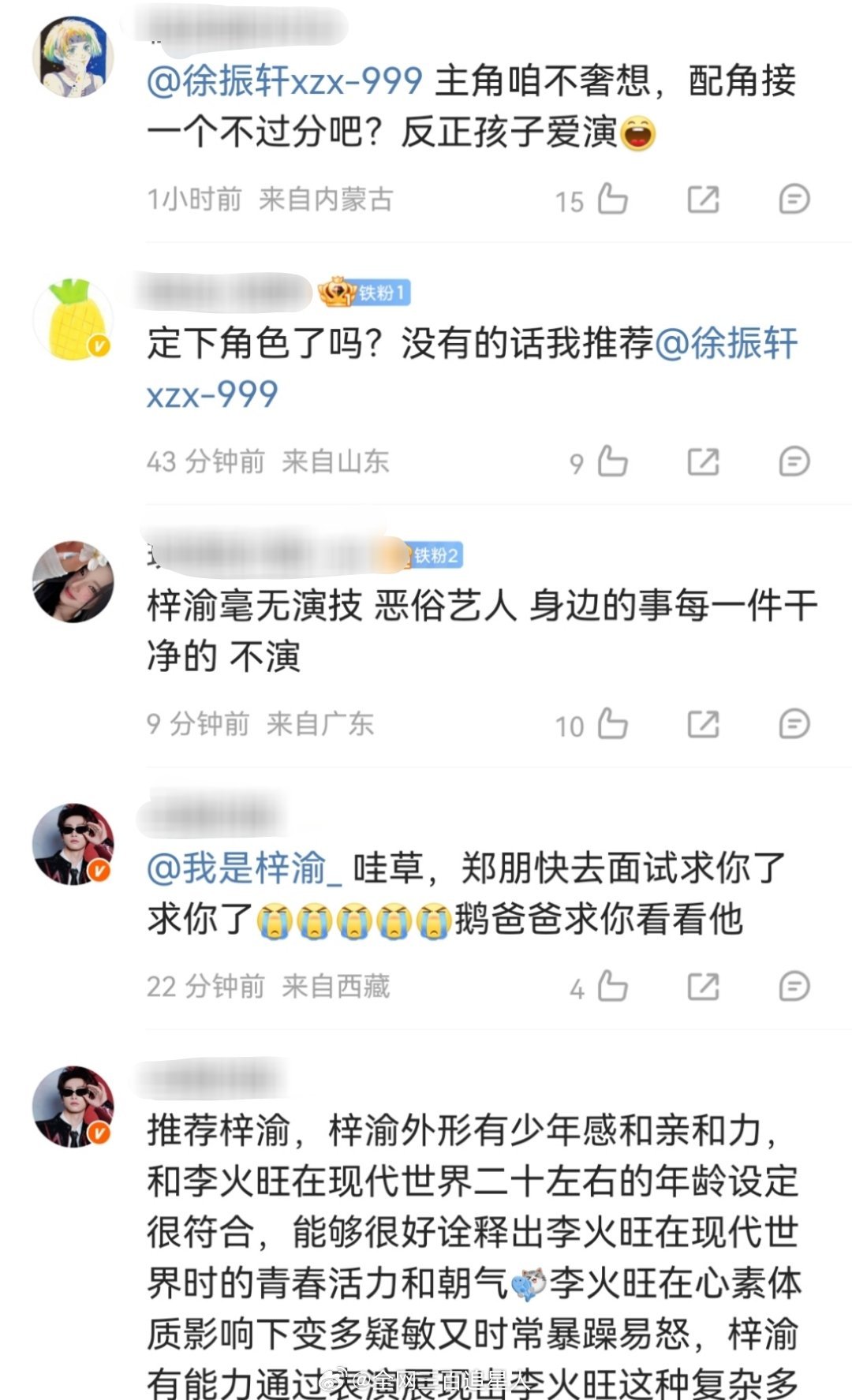 梓渝和徐振轩粉丝已经开始在火旺下面接角色了,怎么样符合吗?