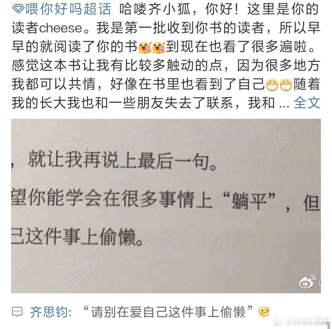 齐思钧把心理疗愈经历写成了书 谁被小齐的《喂,你好吗?》戳中了?他带着自己的心理疗愈经历落笔,因为亲身经历过所以特别能共情大家,还把新书带去节目里和朋友们分享,人和文字都像小太阳一样暖!