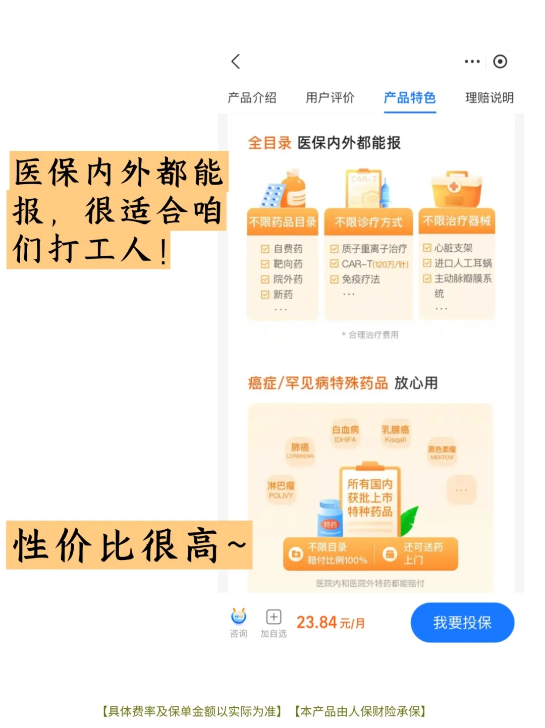 它的0免赔额真的很适合咱们打工人!!每月20来块保费,只花一杯奶茶钱就能享受年累计最高 600 万的保额,性价比非常高!