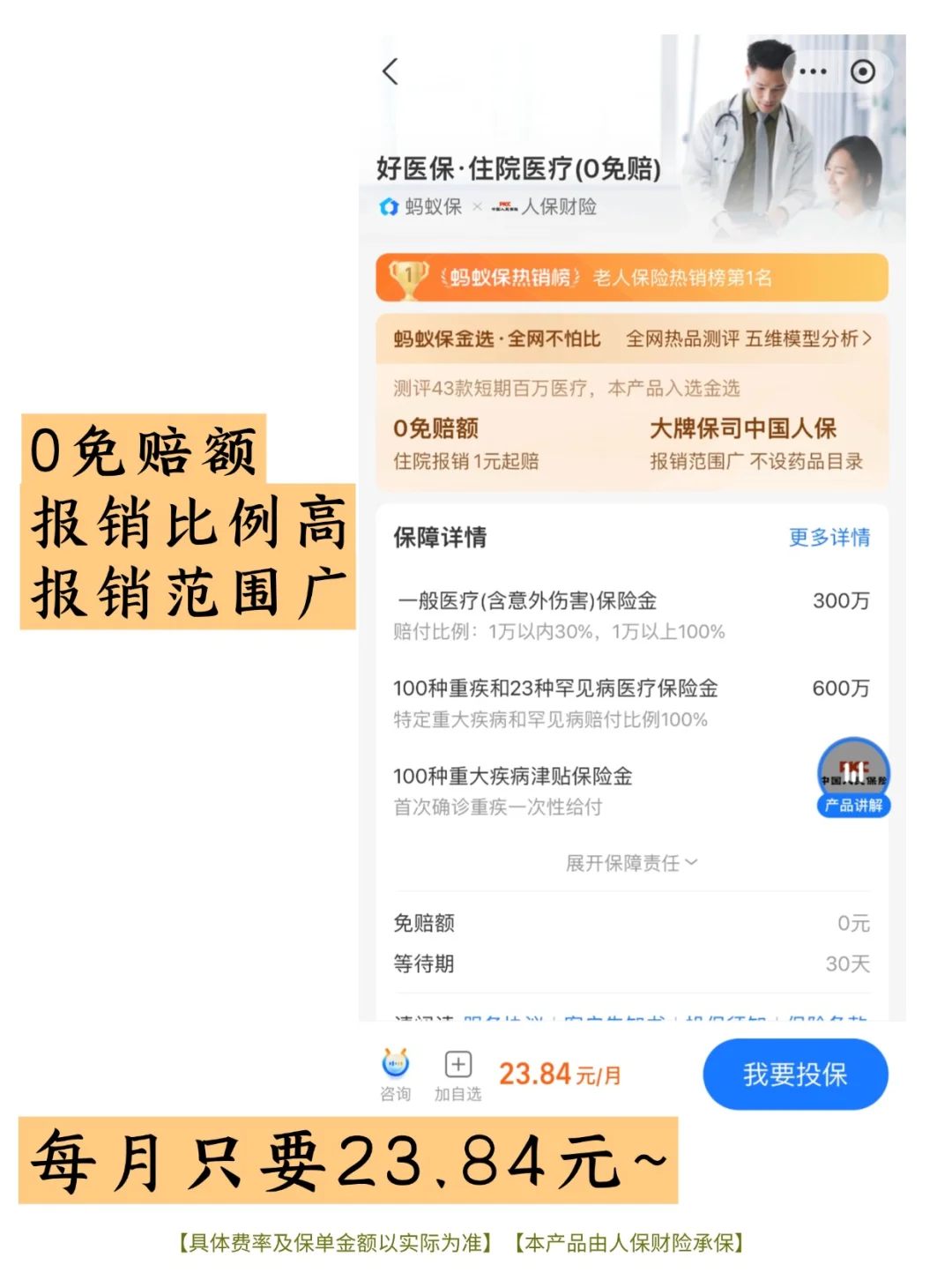 *具体费率及保单金额以实际为准,本产品由人保财险承保