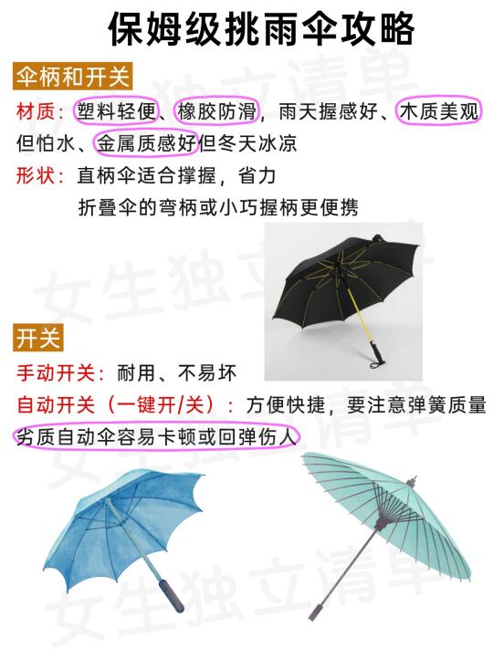 🔥伞柄选塑料轻便、橡胶防滑、木质美观怕水、金属质感好但冬天拿着手冷,直柄省力、折叠伞柄便携