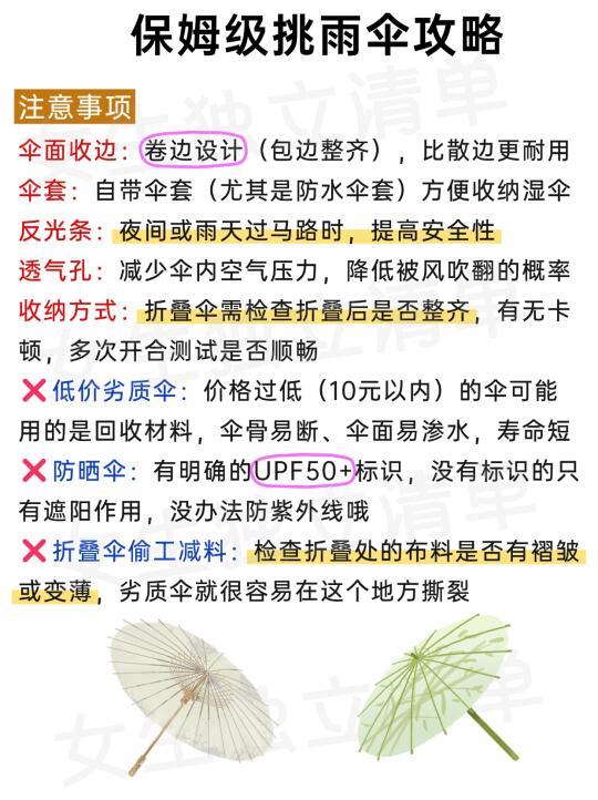 ⚠️10元内低价伞可能用回收材料,易坏渗水