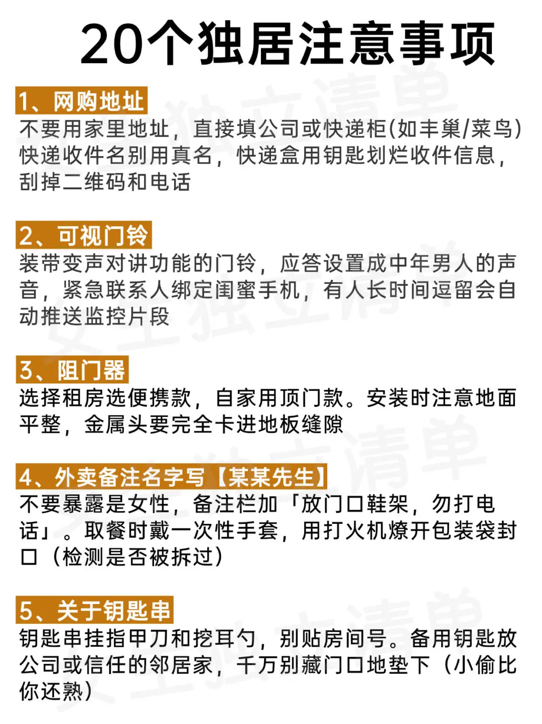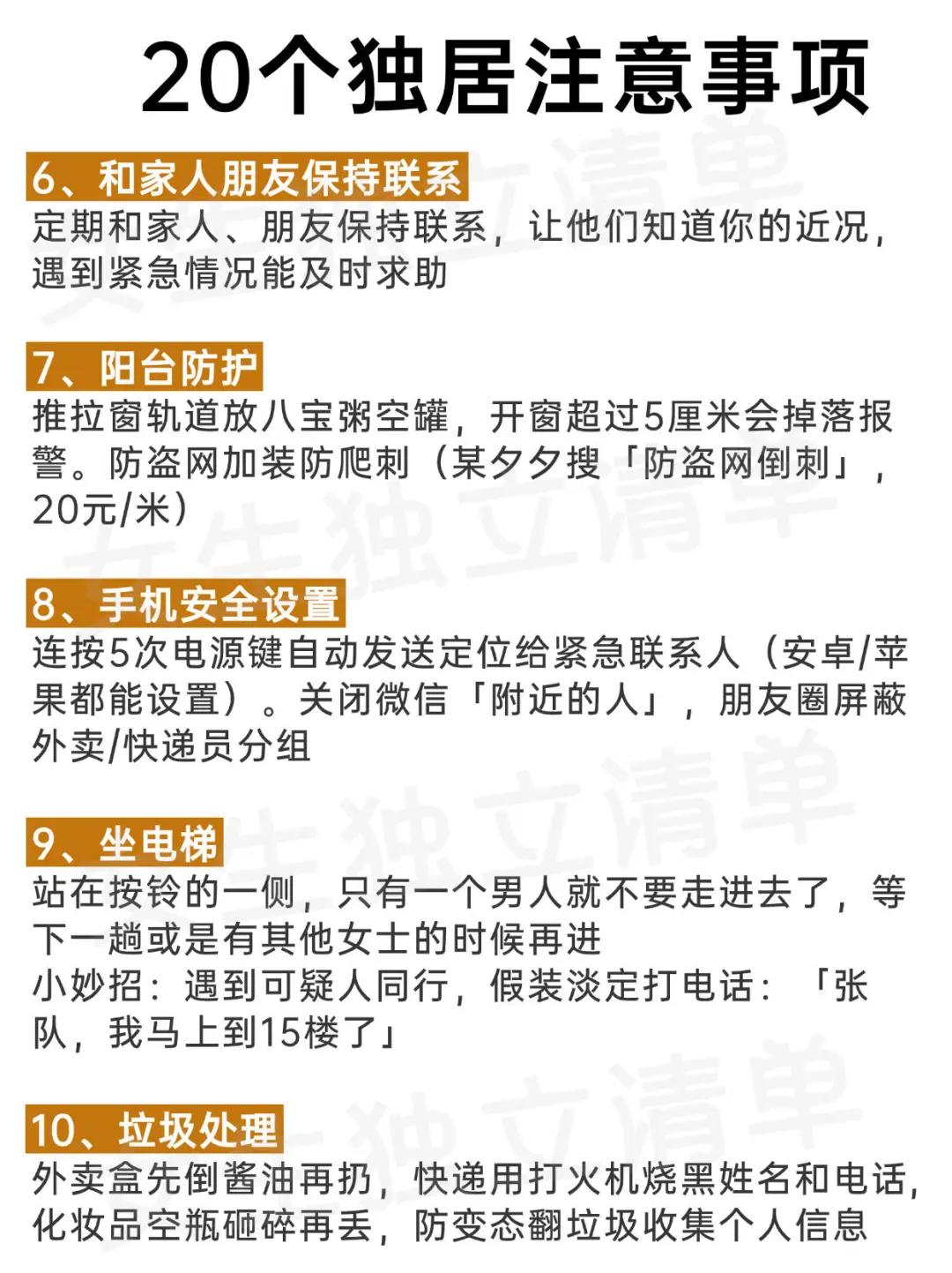 ‼️这不是过度敏感,而是城市独居的真实生存挑战,马住这20条独居保命指南,安全无小事!