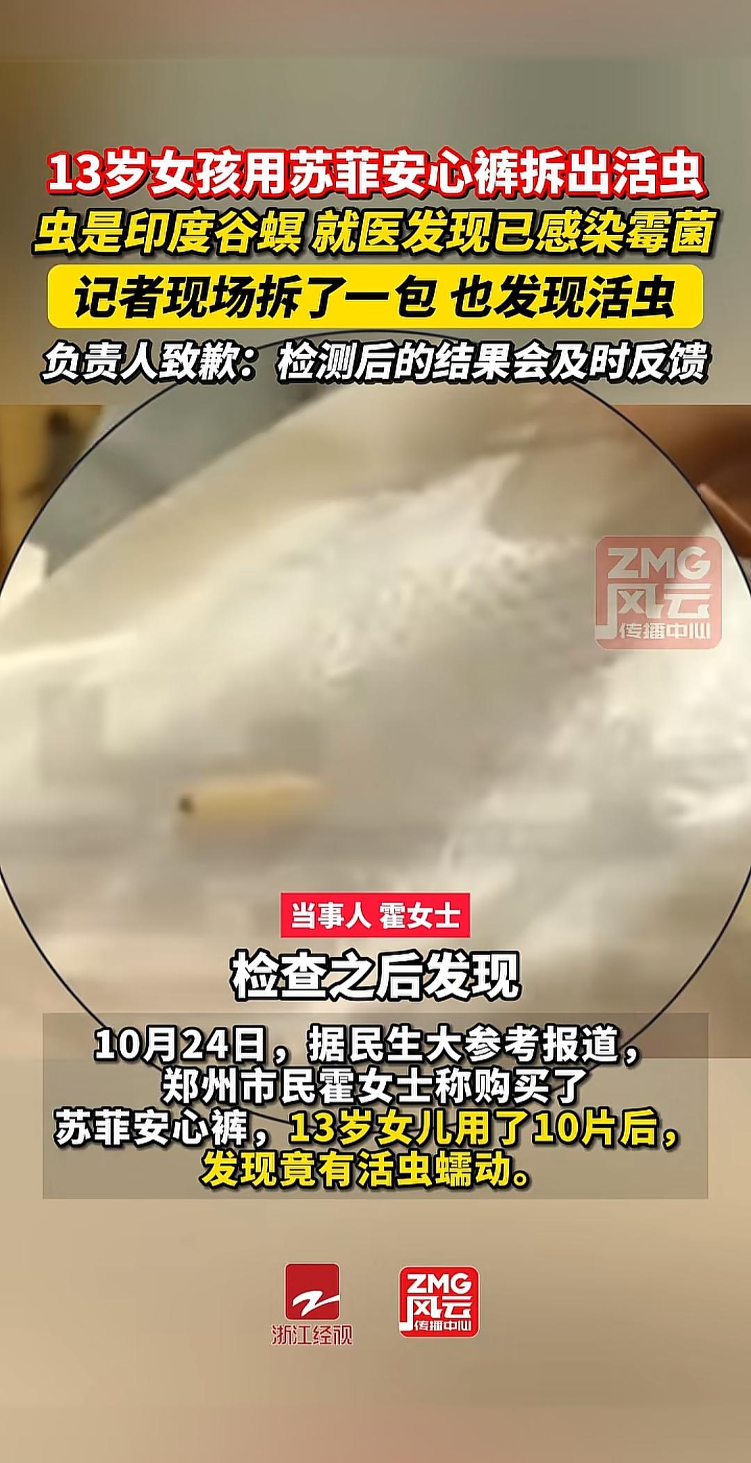 拆开一片‘安心’,竟爬出了活虫! 给13岁女儿用的贴身物件 里面藏着会动的虫子 还是专啃粮食干货的印度谷螟 这哪是安心裤 分明是“养虫袋” 孩子用了十片才发现 去看医生已经感染霉菌 想想都头皮发麻 那虫子爬过的地方 得多脏 更离谱的是记者当场拆新包 照样有活虫往外爬 这就不是个别问题 是批次猫腻 以前出类似事 都以没当场开封为由糊弄过去 做这种贴身用品 本该层层检测 原材料要查 半成品要检 成品要把关 现在倒好 连活虫都能过关出厂 这品控跟筛子似的 全是漏洞 一年大几百亿的营收 还拿过单日销量第一的认证 营销玩得飞起 品控却烂到家 典型的重卖货 轻安全 负责人就会说检测后反馈 这种套话谁不会讲 消费者要的不是道歉 是知道为啥会有虫 以后咋杜绝 花真金白银买的是安心 不是心惊和隐患 连最基本的干净都做不到 再响的牌子 也经不住这样霍霍 贴身用品的底线是安全 这虫子爬出来的不是意外 是对消费者健康的漠视 你说 这样的产品 还能信吗