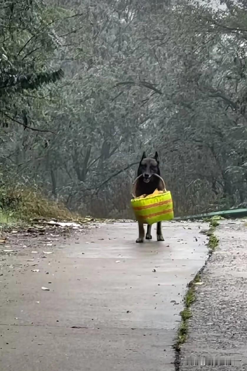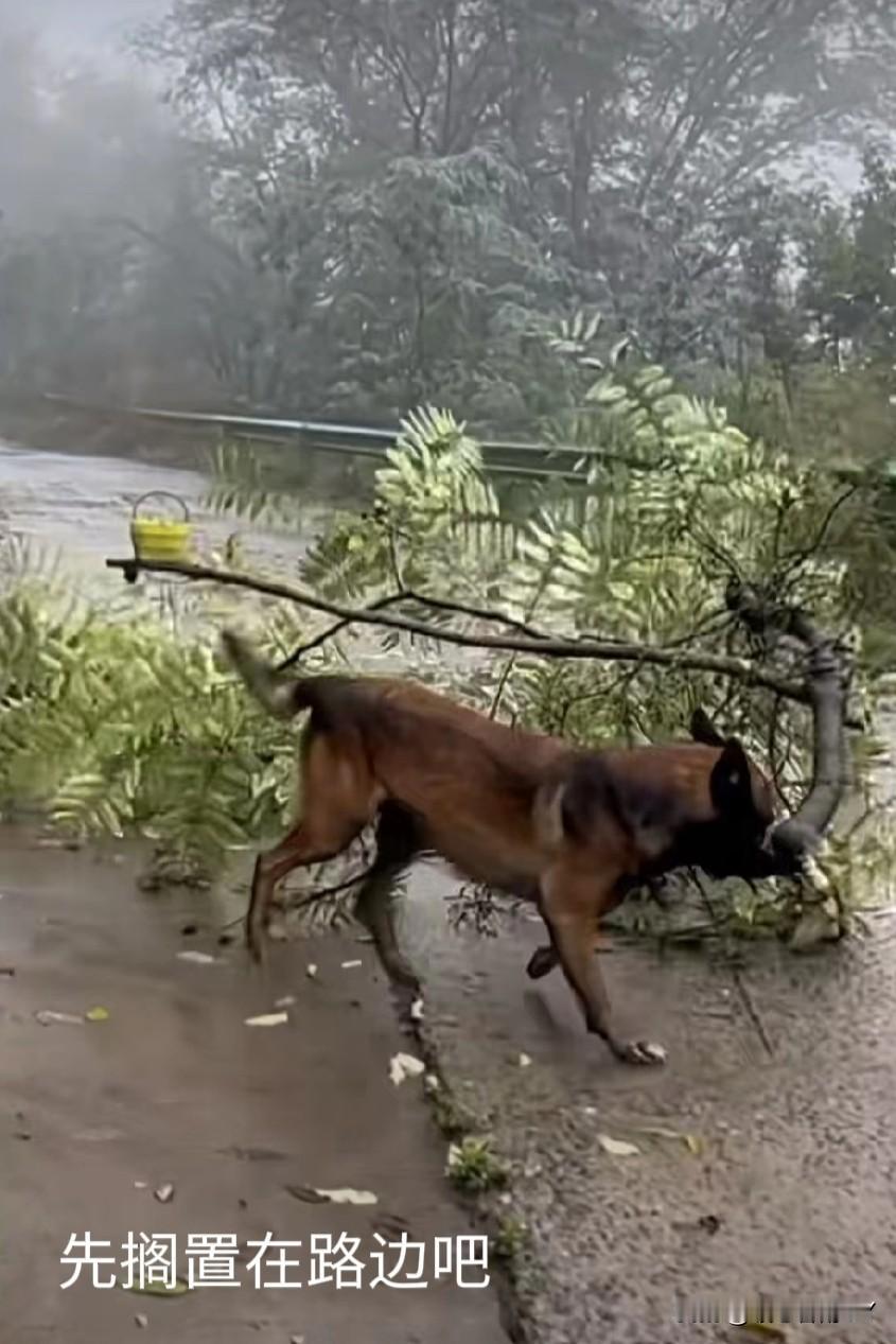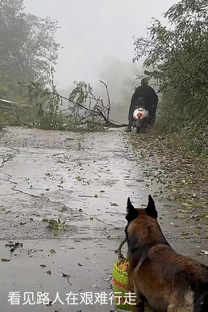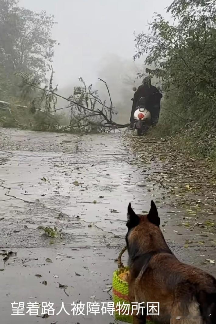 山野雾雨中的“护路犬”:马犬冒雨清障,这一幕暖哭了~ 在雾雨朦胧的山间小路,一只马犬的举动,触动无数人的心灵! 它叼着黄绿篮子赶路时,看见一辆电瓶车正艰难穿梭在被大风刮落的树枝旁,小家伙没有丝毫犹豫,它放下篮子,即刻冲上去,用嘴奋力拉扯沉重的树枝,一趟又一趟的拖拽、调整,把挡路的障碍一点点挪到路边。 雾气打湿了它的毛发,泥水污染了它的爪子,可它只管埋头苦干,直到把路清出能通行的空间,才又叼起蓝子,欢快地跑回自己的“任务”中。 在这清冷的山野间,它或许不懂什么大道,却用最纯粹的行动诠释着善意。 万物皆有灵,这只马犬的担当与温暖,谁能不被触动呢?