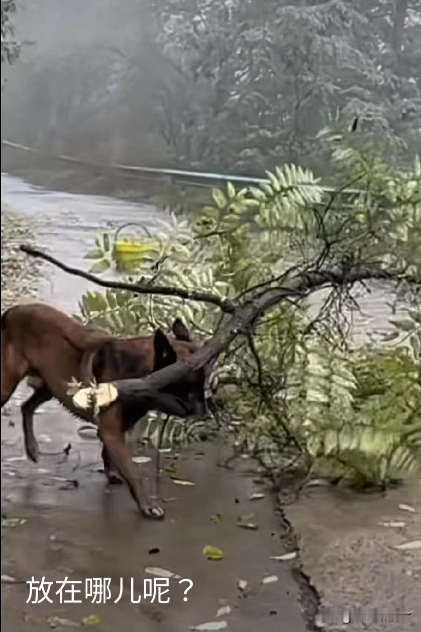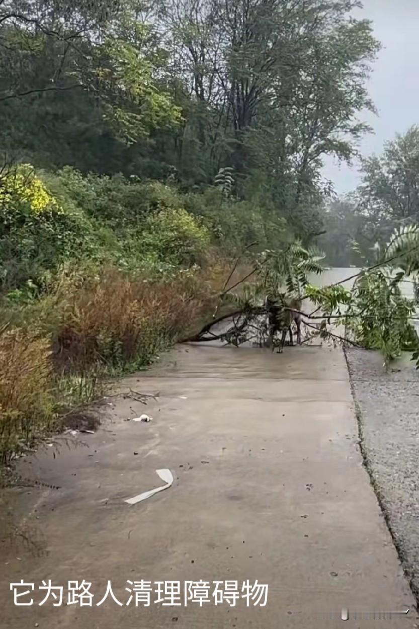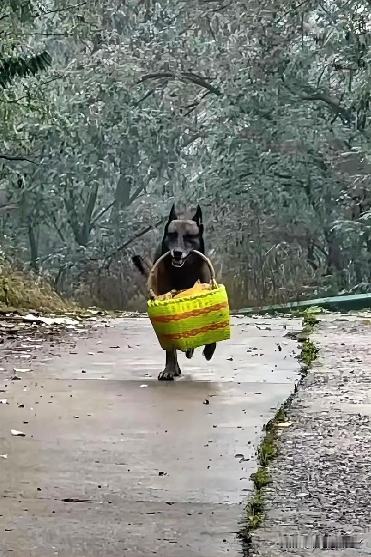 山野雾雨中的“护路犬”:马犬冒雨清障,这一幕暖哭了~ 在雾雨朦胧的山间小路,一只马犬的举动,触动无数人的心灵! 它叼着黄绿篮子赶路时,看见一辆电瓶车正艰难穿梭在被大风刮落的树枝旁,小家伙没有丝毫犹豫,它放下篮子,即刻冲上去,用嘴奋力拉扯沉重的树枝,一趟又一趟的拖拽、调整,把挡路的障碍一点点挪到路边。 雾气打湿了它的毛发,泥水污染了它的爪子,可它只管埋头苦干,直到把路清出能通行的空间,才又叼起蓝子,欢快地跑回自己的“任务”中。 在这清冷的山野间,它或许不懂什么大道,却用最纯粹的行动诠释着善意。 万物皆有灵,这只马犬的担当与温暖,谁能不被触动呢?