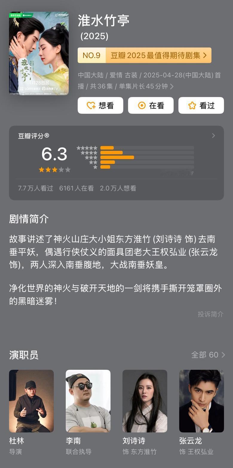 杨幂龚俊的《月红篇》和刘诗诗的《淮水竹亭》扑得那叫一个惨! 前者特效像五毛钱手游,杨幂演技十年如一日,豆瓣5.”分真不冤;后者画面美如画,感情戏却像快进键,6.3分卡在中间不上不下。 反观《天地剑心》,成毅苦练三个月打戏,拳拳带风;李一桐把女主演成邻家小妹,俏皮又倔强,剧情紧扣原著还添彩,开分估计7以上。这波操作说明啥?流量明星名头再响,不打磨基本功照样翻车;反倒是踏实演戏、尊重作品的,才能赢得观众心。 看来,观众的眼睛是雪亮的,光靠脸和名气,真混不了这碗饭了!