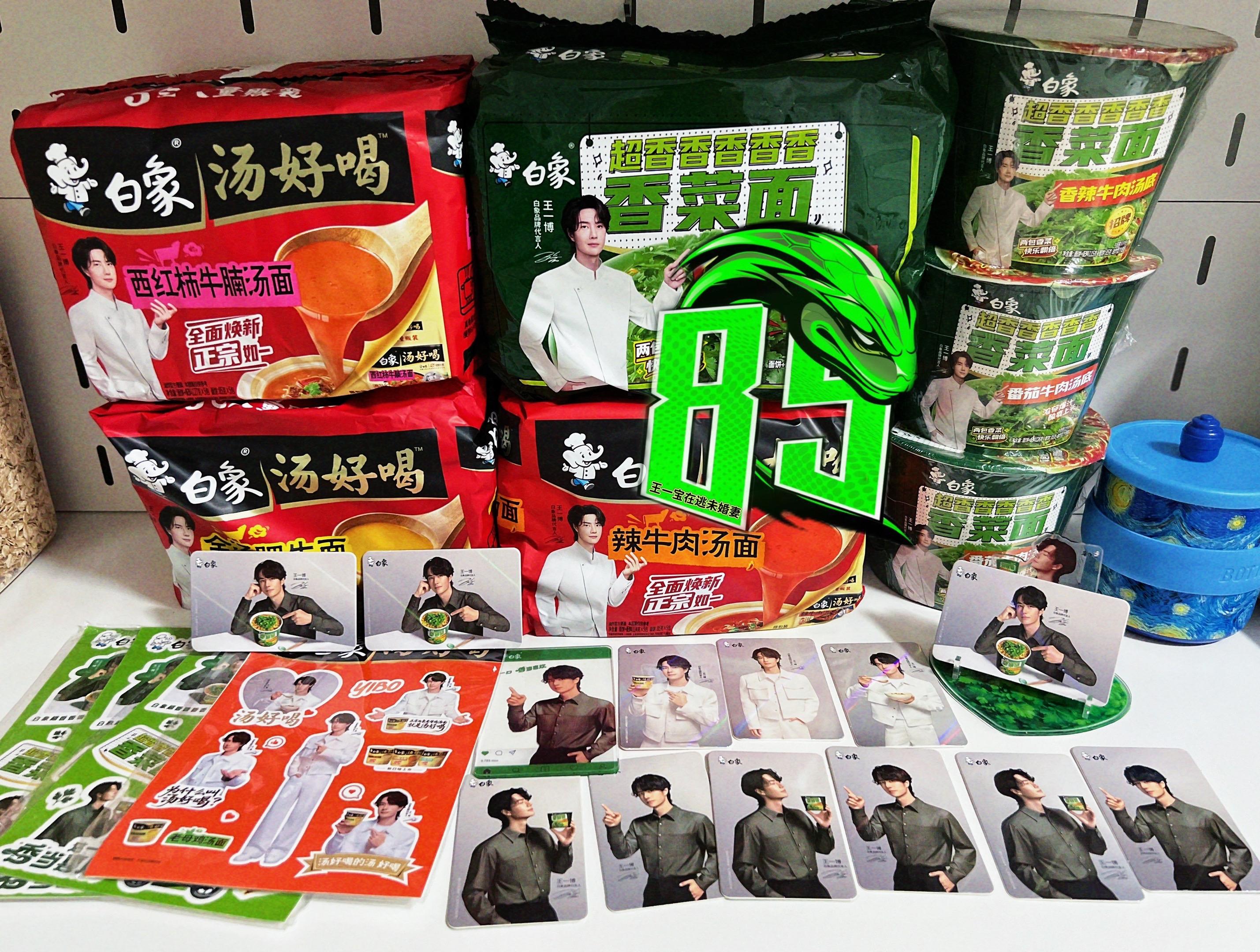 哇 白象好好看👀王一宝好好吃😋。😋哦不对 说反了😂 话说我博哥这小卡是彩虹色耶~🌈 白象还是太会做周边了!💚💚💚