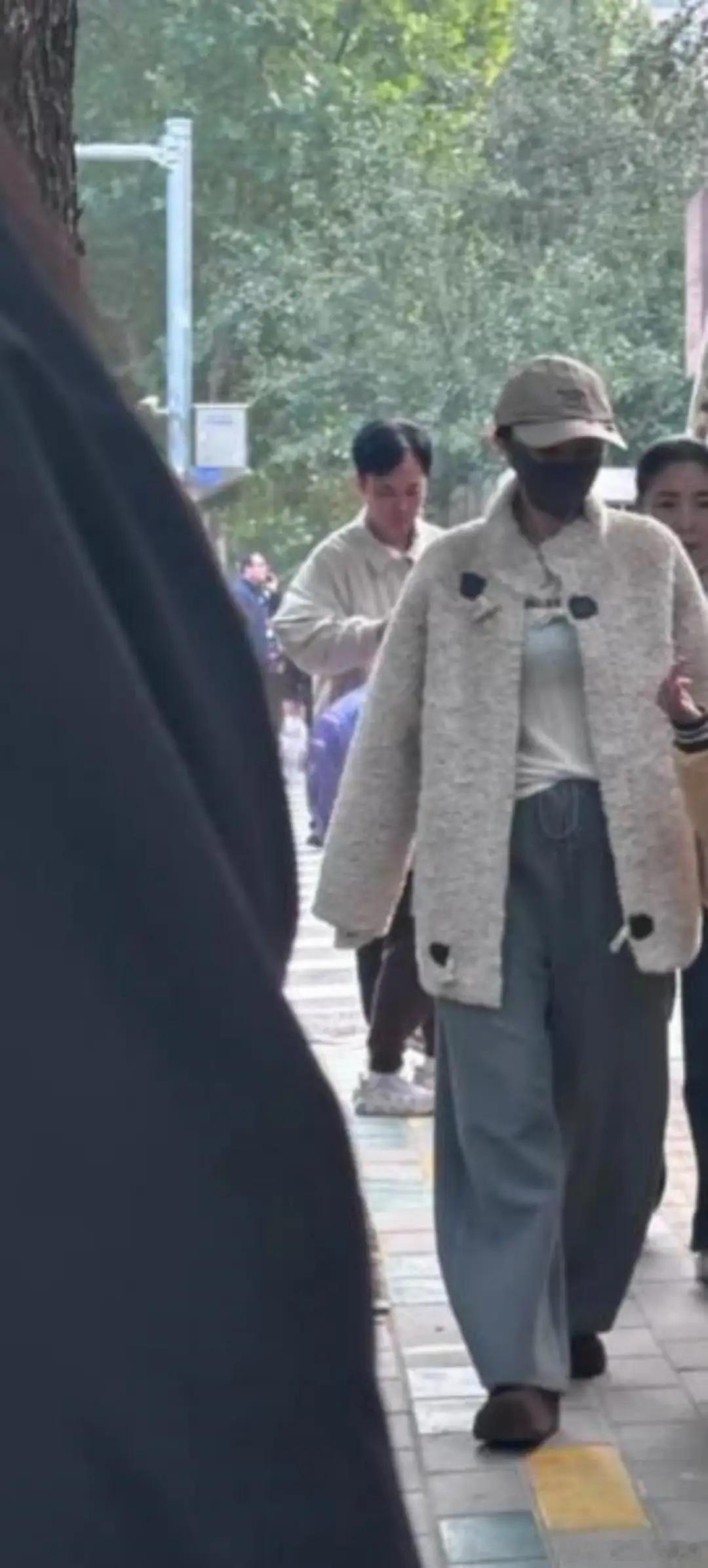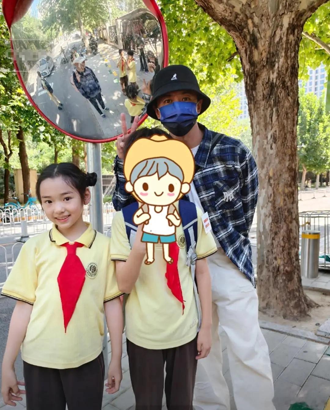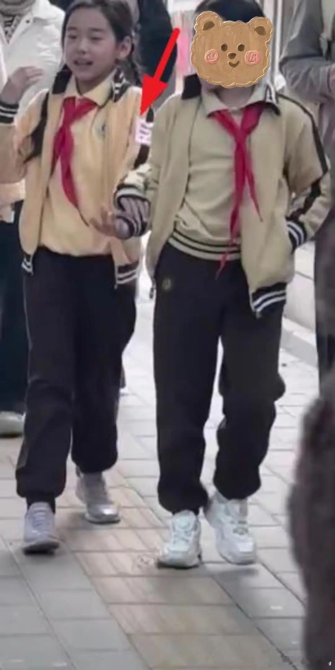 董璇一家三口接女儿放学,酒窝读公立学校,戴三道杠袖章好厉害!
