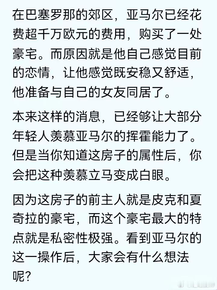亚马尔斥资千万欧元,购买豪宅,准备金屋藏娇。大家批评他,不应该过度曝光自己的私生活。