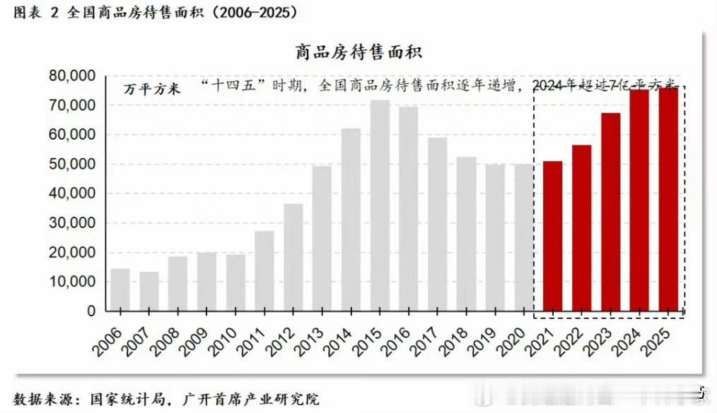 人均住房面积超过40平方米。 商品房待销售面积超过7亿平方米。 商品房库销比超过6,为历史最高水平。库销比是库存量与销售额的比率,库销比越高反映库存积压越严重。 新增住房总需求竟然高达14亿平方米,待售面积7亿平方米,什么意思?再继续建设7亿平方米的商品房? 卖不完,根本卖不完。