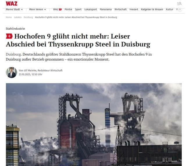 哦豁,连德国最老牌的钢铁厂都开始关闭熔炉,静静地告别钢铁时代! 说起德国的钢铁业,那可真是让人感慨万千。蒂森克虏伯这家老字号企业,最近直接关了杜伊斯堡厂的9号高炉,这事儿闹得沸沸扬扬。2025年10月22日,高炉正式停摆,从1963年投产到现在,足足干了62年,中间还大修过一次,基本换了所有部件,就留着地基和支架。这不光是台机器关门,更是整个鲁尔区工业传统的一次大告别。想想看,过去几十年,这片地儿靠着高炉的火光和钢水的轰鸣,养活了多少人,现在却得面对能源贵、环保严、市场差的三座大山。德国人自己都直呼“游戏结束了”,一边还得琢磨怎么在绿色转型中续命。 要聊蒂森克虏伯,得从克虏伯家族说起。这家族的根基打得早,1811年,弗里德里希·克虏伯在埃森郊外开了家小铸钢厂,当时就俩合伙人,专做英国式铸钢和相关玩意儿。起步那会儿,日子过得紧巴巴,厂子小得可怜,产品也卖不动。弗里德里希1826年就走了,留给儿子阿道夫一个烂摊子,年仅14岁的阿道夫接手时,厂里就剩俩学徒和一台破炉子。他咬牙坚持,1830年代搞出无缝铁路车轮,这东西一出,铁路公司订单刷刷来,厂子从棚子变厂区,员工从几个人涨到上千。阿道夫这人务实,亲自上手改工艺,引进了贝塞麦转炉啥的,钢产量蹭蹭上。1851年伦敦世博会,他带去的大炮管子一炮打响,欧洲订单源源不断。从这儿开始,克虏伯转向军工,普法战争时给普鲁士军队供钢材,战后生意更火。 克虏伯家族的扩张没停过,阿道夫1887年去世后,儿子阿尔弗雷德接棒,继续放大招。1902年,女儿伯莎继承,1903年公司改成股份制,但家族控制没松。阿尔弗雷德·冯·波伦娶了伯莎,把公司带上新台阶,一战二战期间,克虏伯成了军火大户,生产炮弹、坦克啥的,卷入不少争议事儿,比如劳工问题和战争关联,这些历史黑点到现在还被翻出来说。战后,家族影响力淡了,1999年克虏伯跟蒂森合并成蒂森克虏伯,成了工业巨头,钢产量一度占德国一半。但好景不长,2000年后,全球钢市变天,中国低价钢涌入,能源危机又来,蒂森克虏伯的钢部门开始吃亏。2013年亏了47亿欧元,领导层换了好几茬,最近2024年钢部门老大还辞职了,危机感拉满。 现在回到9号高炉这事儿。蒂森克虏伯钢部门2025年上半年产量就掉12.1%,比去年同期少产不少。关炉决定是7月跟工会IG Metall谈出来的“钢铁重组集体协议”,核心是砍产能、减岗位,到2030年粗钢产能从1100万吨降到800万吨,岗位减1.1万个,但协议里强调社会保障,避免强制裁员,主要靠自然流失和轮班调整。9号高炉年产170万吨,2026财年(从2025年10月起)就关,8号高炉年产180万吨,也得在2026年底拆。为什么这么急?能源成本高得离谱,天然气价翻倍,每吨钢多出20%开销;欧盟碳排放配额罚款年年加码,钢厂碳足迹太大;全球市场呢,亚洲钢材便宜进口,德国钢卖不动。杜伊斯堡厂是蒂森克虏伯的心脏,过去是鲁尔区经济支柱,现在却成转型靶子。 关炉不是拍脑袋决定的,早几年就布局绿色路子。蒂森克虏伯在杜伊斯堡投35亿欧元建直接还原铁厂(DRI),用天然气起步,2030年后换绿氢,取代两座老高炉。加上两座氢基电弧炉,总产能稳在870万吨。欧盟批了补贴,德国政府也跟进,但氢供应成瓶颈。2025年9月,德国审计署报告说,国家氢战略得大改,不然2030年本土绿氢产不出,进口也跟不上。蒂森克虏伯的DRI项目推进中,但氢价高、电网弱,进度慢。想想看,绿氢炼钢听起来高大上,但实际操作,电价贵、电不够用,项目一拖再拖。隔壁阿凯米塔尔也黄了德国绿钢计划,本来要投氢,但2025年6月叫停,转推电弧炉,等氢成熟再说。德国钢业整体就这样,转型雄心大,现实掣肘多。 德国钢业这波变迁,不是孤例,得放眼全球。过去,德国靠重化工业称霸欧洲,鲁尔区高炉林立,钢产量养活百万工人。但气候协议一签,碳中和目标压顶,传统高炉烧煤喷焦炭,排放占工业30%。欧盟2030年碳边境税要落地,进口高碳钢得加关税,德国钢厂不转不行。可转氢路子,成本翻倍,短期亏本。蒂森克虏伯2024财年钢部门亏了5亿欧元,2025年上半年继续红灯。工会虽同意重组,但抗议不断,工人担心饭碗。政府呢,朔尔茨内阁推氢战略,2025年10月又说要改补贴,加大进口依赖,找澳洲、智利买氢。默茨这保守党领袖8月还喊要钢业专项战略,帮企业渡难关。说白了,德国想当绿钢先锋,但供应链不稳,地缘风险高,中东天然气乱套,俄乌战后能源更贵。