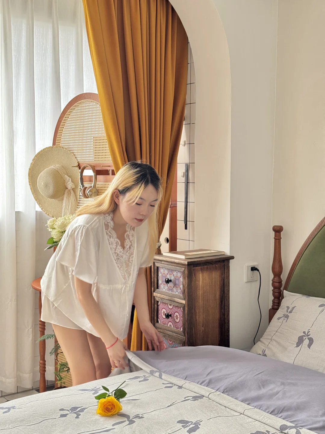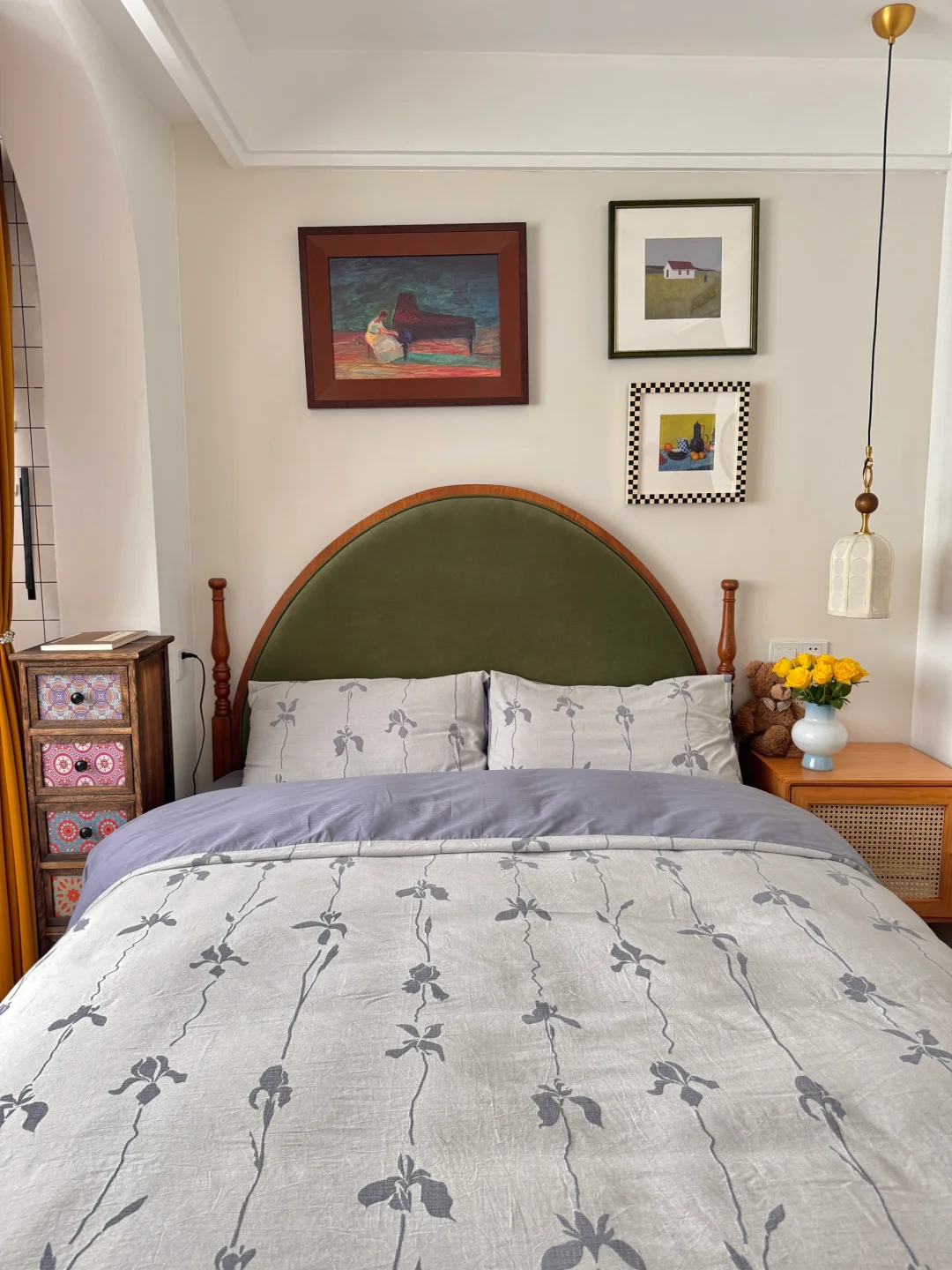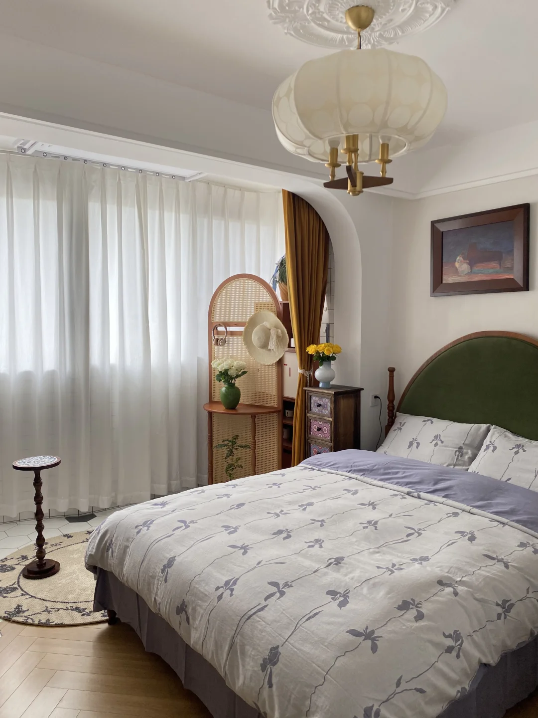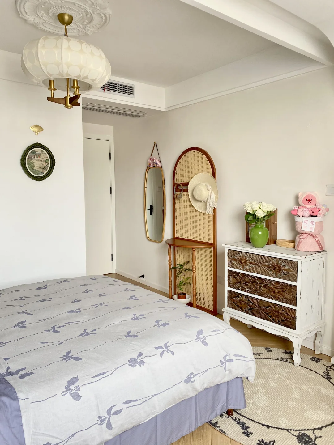 又到了可以光脚踩在地毯上的季节。 这几天都30多度, 买了花花,换上了短款睡衣, 今天又是被卧室美到的一天!
