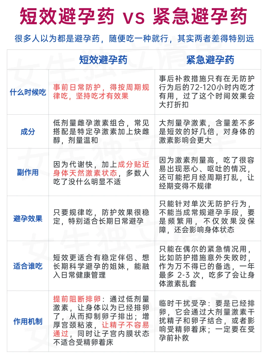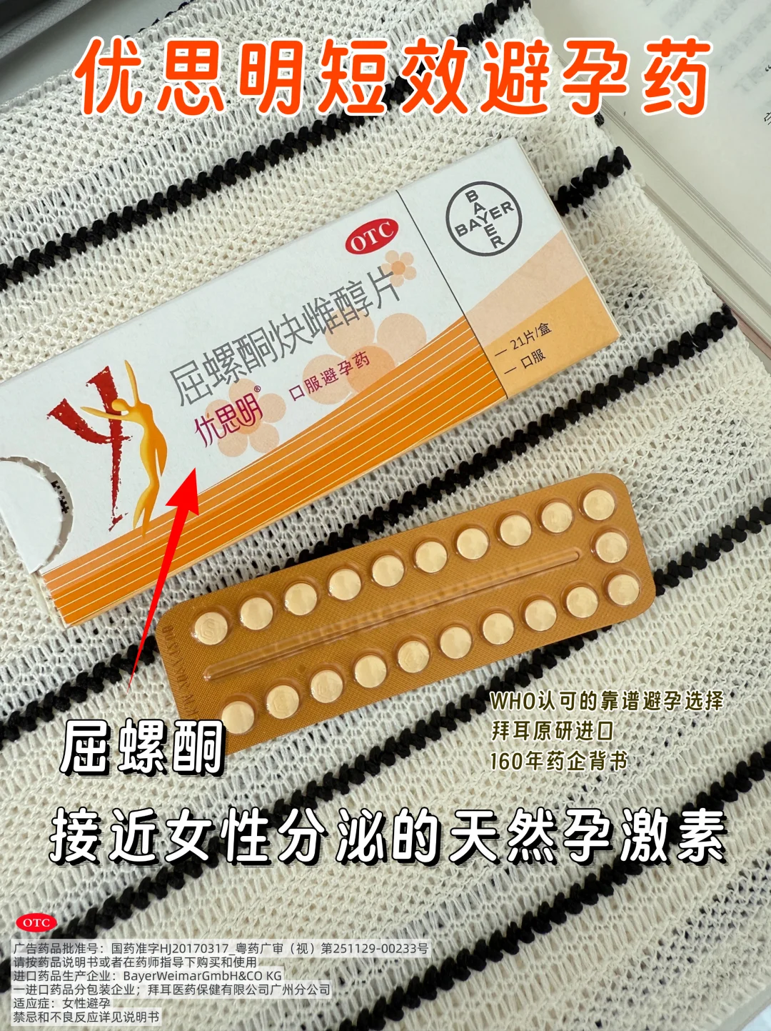 提到短效,很多姐妹会怕激素副作用,但如果产品选对,这些顾虑其实大多是多余的,👉🏻我以市面上效果比较不错的优思明为例,有需要的姐妹也可以自己去了解下 - ✅服用规律 优思明的用法是21+7,大姨妈第一天开始吃,每天固定时间吃1片,连吃21天停药 7 天,停药3-7天会有撤退性出血,第8天不管血有没有停,都要开始吃下一轮。✔️不用算排卵期、不用临时找防护工具,跟日常打卡一样,对忙碌的职场姐妹非常友好~🔺比如早上化妆时顺手吃1片,定个闹钟就不会忘,完全不用为什么时候安全焦虑 - ✅成分够友好,身体不排斥,其实关键就在它的核心成分—屈螺酮,和有些短效里的孕激素不一样,〽️屈螺酮更接近咱们身体自己分泌的天然孕激素,身体不容易产生抗拒,而且它代谢特别快,🔺不会在身体里堆积,这也是副作用少的重要原因 - ✅大厂背书,吃着更安心 优思明是德国拜耳旗下的,👀拜耳的历史有160年,还是世界 500 强,做药的严谨度不用多说。👀它在国内卖了15年多,是很多发达国家女生的避孕首选,还是OTC非处方药哦 - ✅自己掌控人生的爽感! 避孕环、皮埋都要去医院做手术,〽️短效避孕药自己在家就能吃,出差时放化妆包里,体积小不占地方。👩不用依赖别人,自己就能把健康防护安排明白,掌控自己的身体才是真的掌控人生啊! - ‼️短效避孕药VS紧急避孕药 🍀短效避孕药是日常防护,就像每天护肤一样,得提前规律用才管用 🔺从大姨妈来的第一天开始,每天吃1片,连吃21天,然后停7天,🎈停的时候会像来月经一样出血,第8天再开始吃下一盒,这样循环着来 👉🏻它用的是温和的激素组合(屈螺酮搭配炔雌醇),通过不让卵子排出来、让精子不容易通过宫颈,达到防护效果,代谢快,👩多数人吃了没明显不舒服,适合有稳定伴侣、想长期规律避孕的人 🍀紧急避孕药是事后补救,只有在没做好防护后的72-120小时内吃才有用,➕靠干扰精子和卵子结合、或者阻止受精卵着床起效,一年最多只能吃2-3次 - 👭姐妹们,避孕是对自己健康的负责,选对方法很重要。〽️如果姐妹想选短效避孕药,一定要认准正规品牌,规律服用,有不清楚的地方多看看说明书,➕或者咨询专业人士~