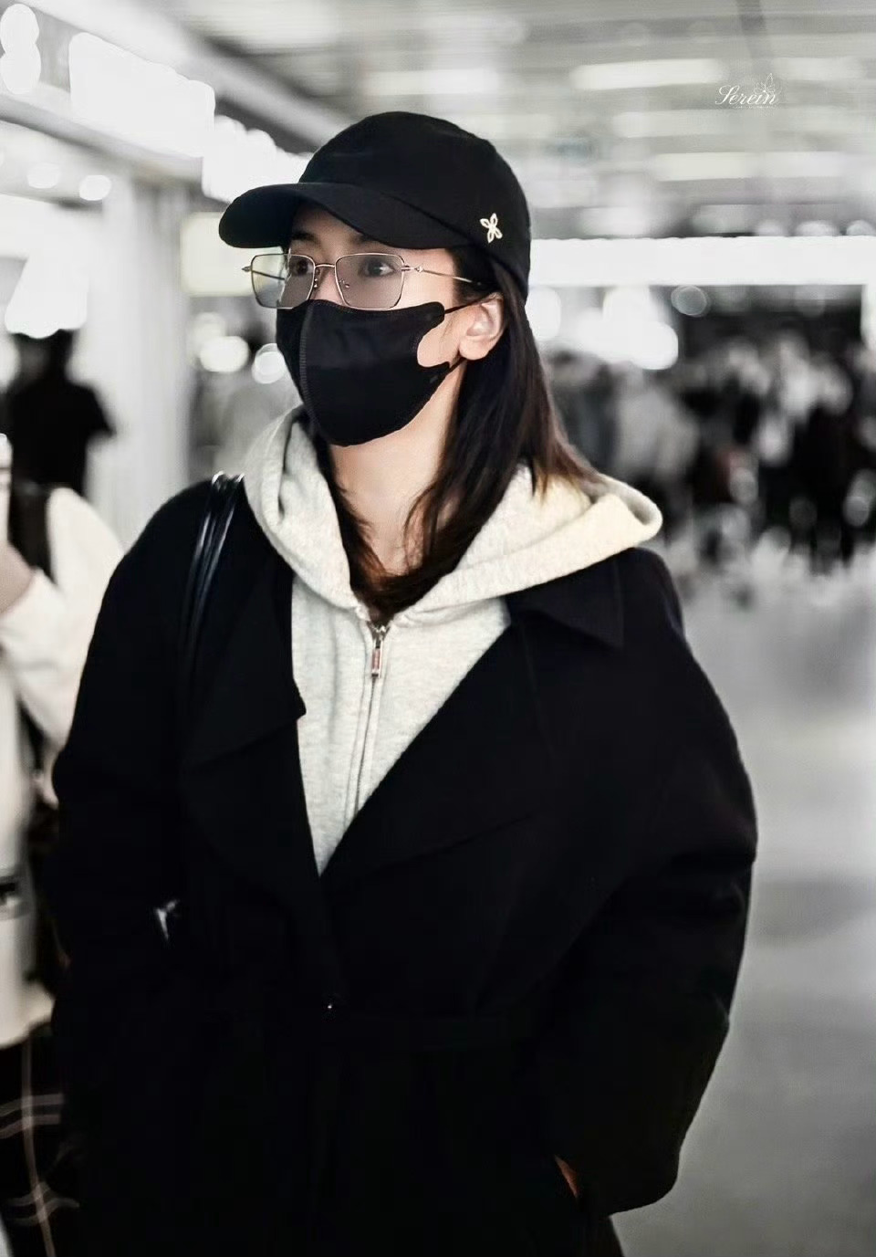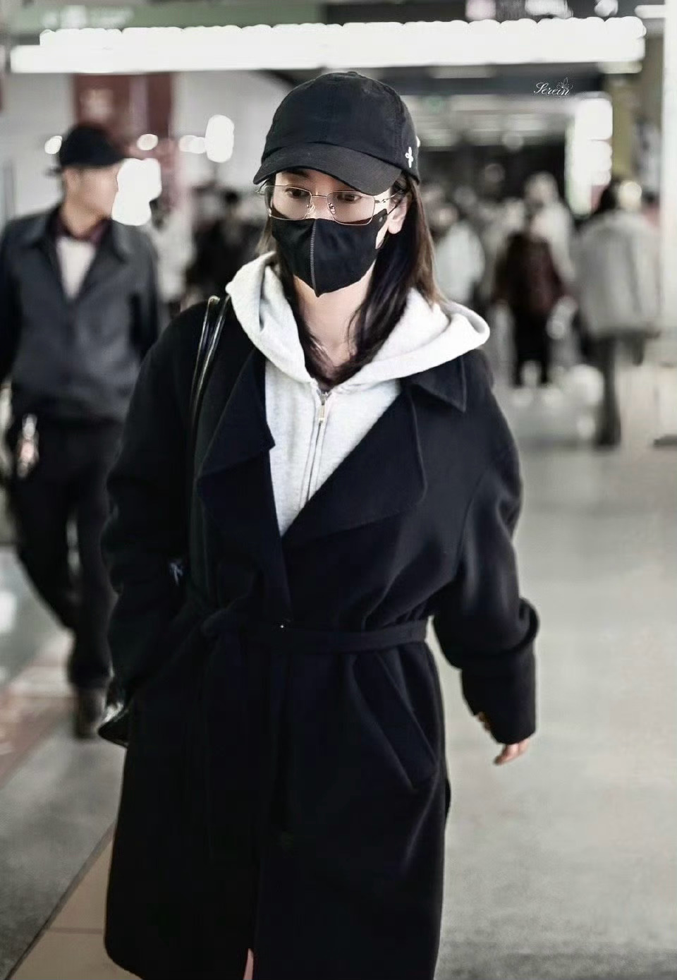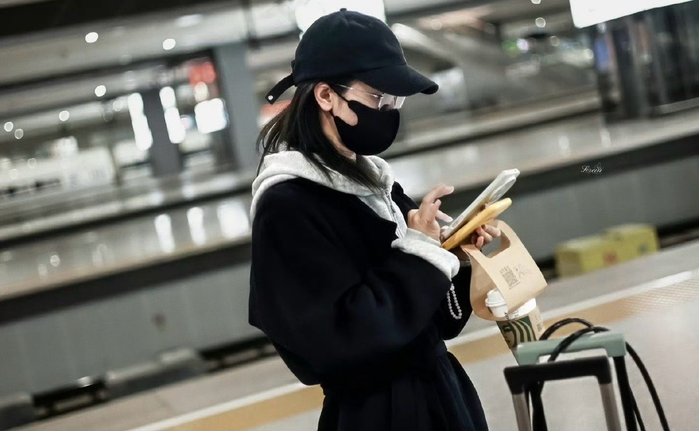 张天爱跟素人合影,胯真的好宽,大宅院似的