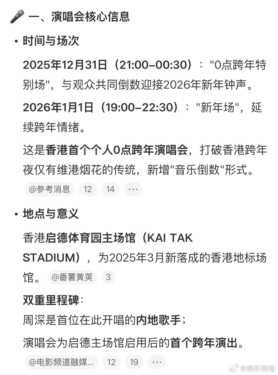周深首位内地歌手登香港启德主场 周深荣誉这句话到底还要说几次,每次觉得周深已经很厉害了,他就会继续放大招。看似寻常宣布一场演唱会,实则是启德体育场启用后的首个跨年演唱会,也是香港首个个人0点跨年现场,更是内地歌手登香港启德主场第一人。👍