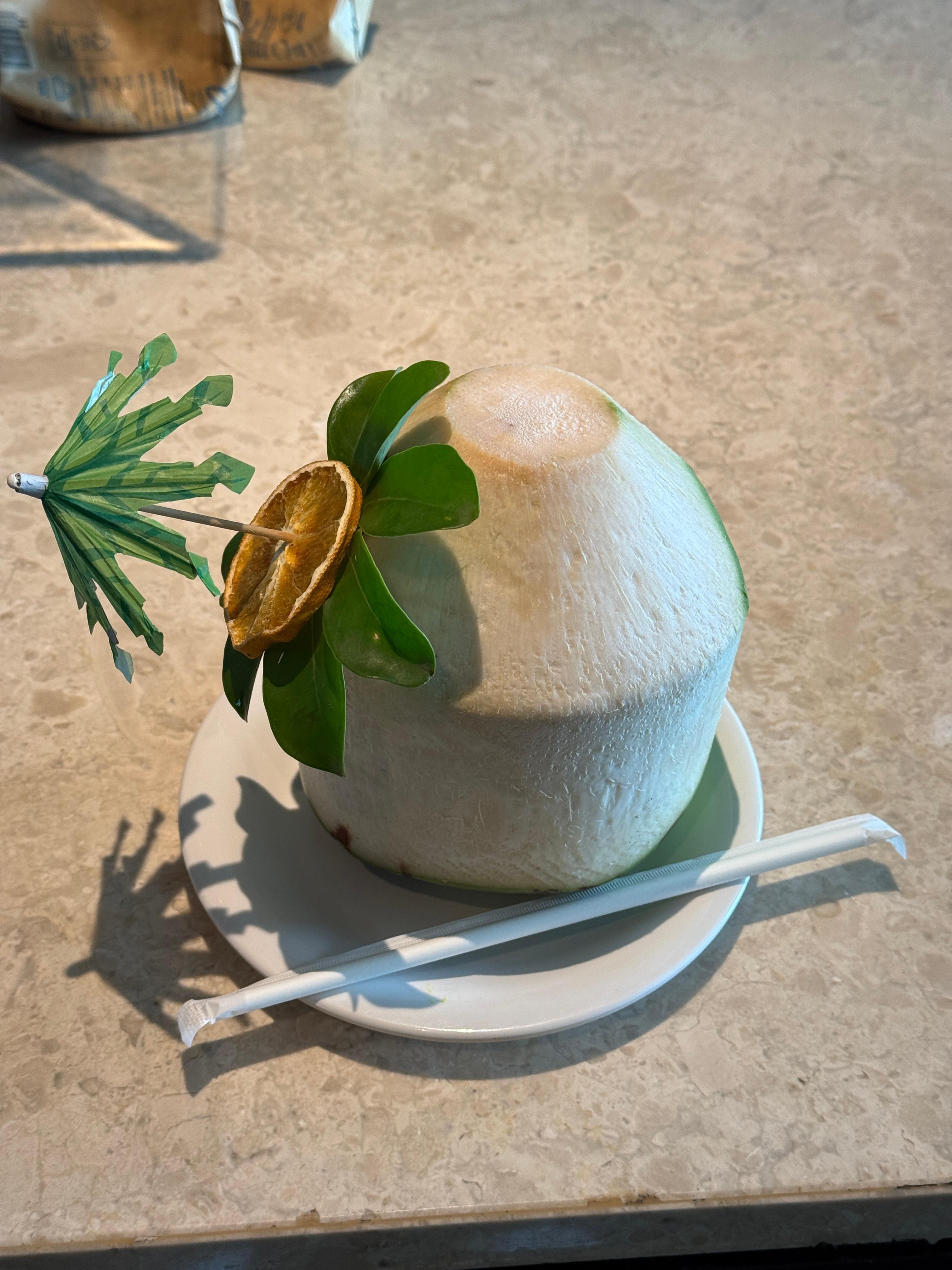 小鹏的活动总是体贴入微,进门就给一堆防晒用品。刚办理完入住,服务员就拿进来一个刚劈开的椰子,贴心,太贴心了。