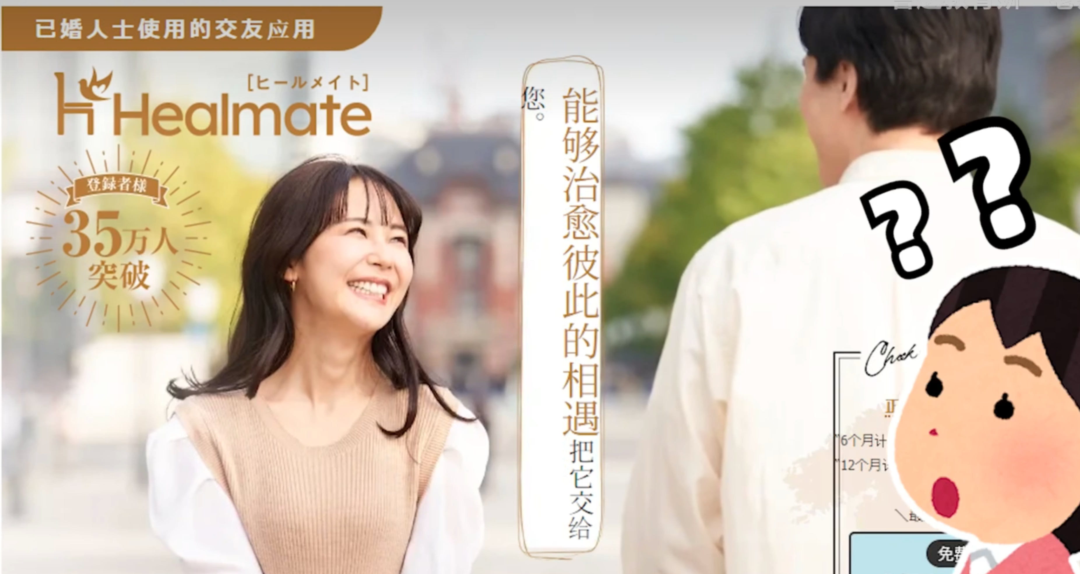 日本这么开放的吗,专门为已婚男女设计的交友 app~他们认为家里安排的婚姻不是自己的选择,试着为自己活一次。这样的广告语确实蛮让人心动的。假如是你,你会注册一下。