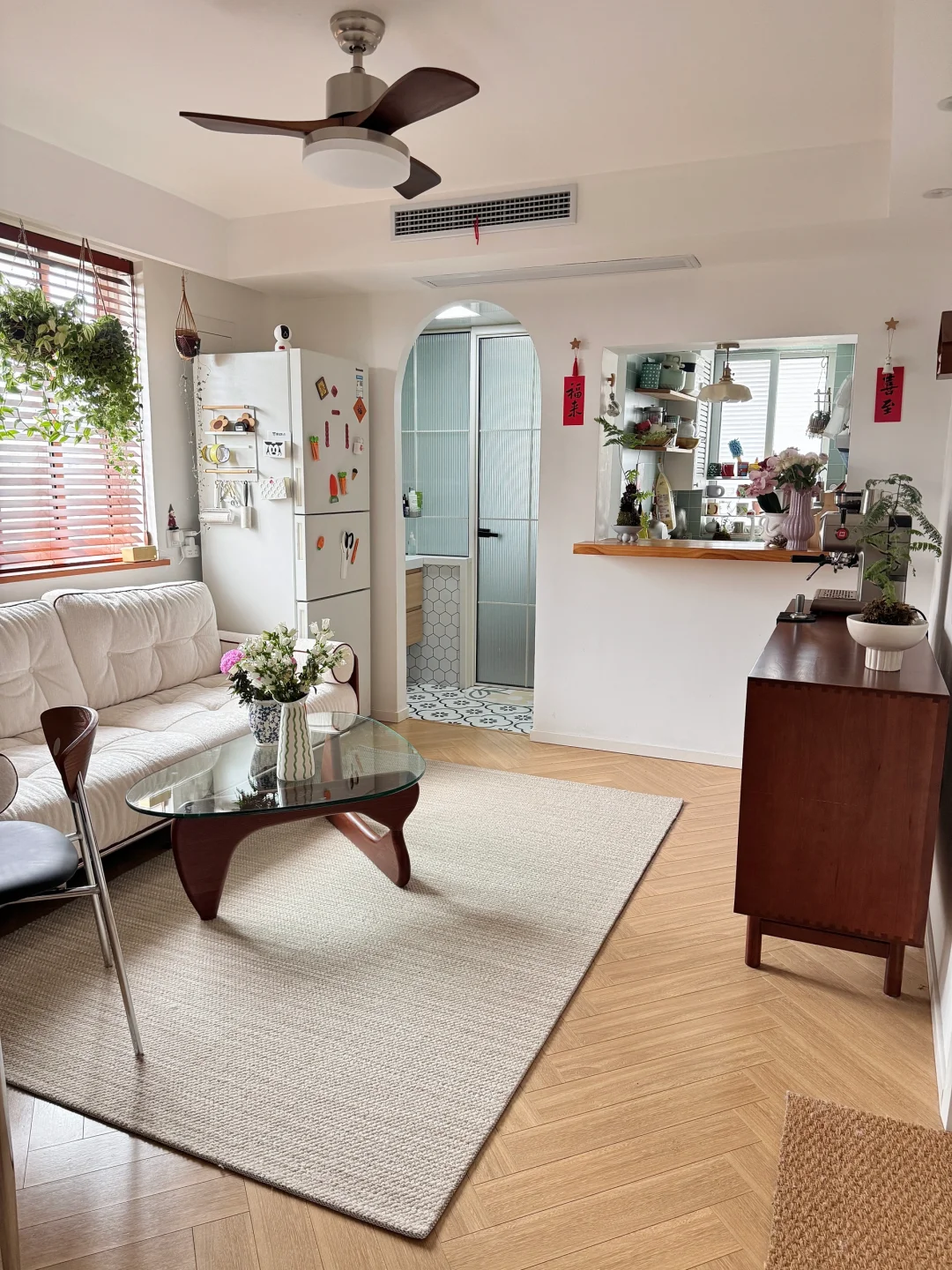 📍坐标上海 📌建面65平,实用51平 ✨客餐厅一体,层高2.6m ✨客厅约9平,沙发2m ✨餐厅约6平,桌子1m ✨开间 4.5*3.3m,地毯1.6*2.4m 家的养成计划可持续生活家与植物一起生活图纸上的家60分的家进度90%的家房子变成家的时刻我在搞装修一个人住装修过来人我的家里不能没有植物原地焕新家家的养成计划治愈家的小毛病陪我长大的房间装修内行人毫无必要的设计穷装显贵指南平等居住的家住进长期主义的家梦想改造家涨粉涨赞用薯条