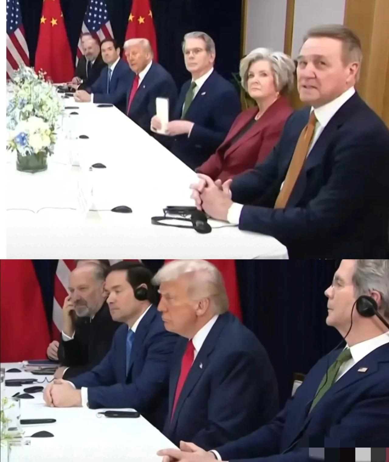 中美双方在韩国釜山进行会晤。现场照片显示,美方谈判桌上有7人,美国总统特朗普位于