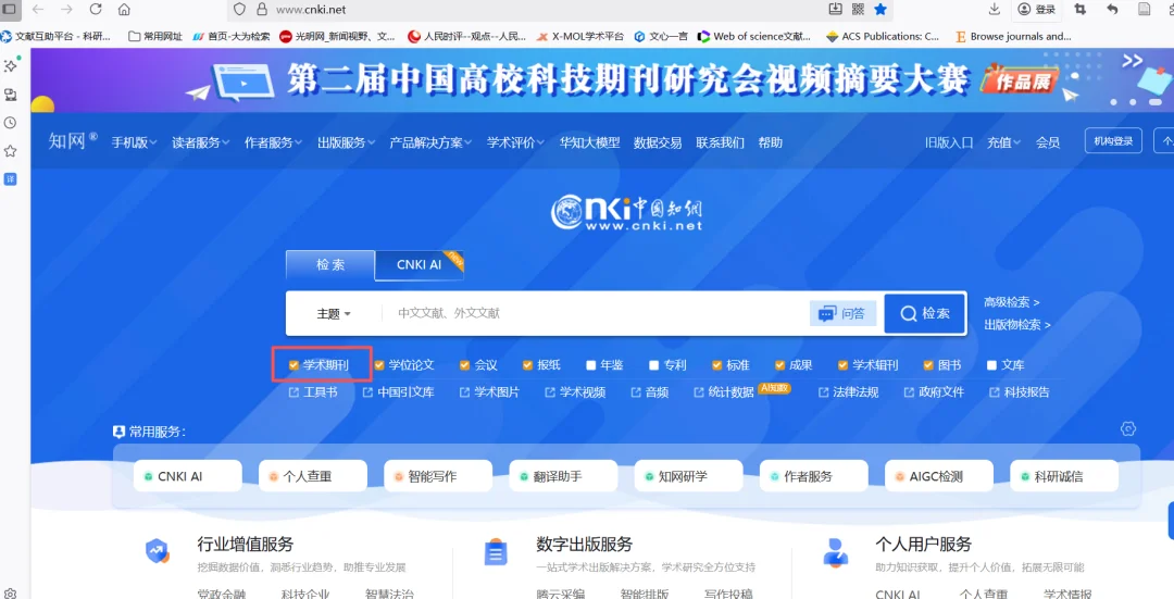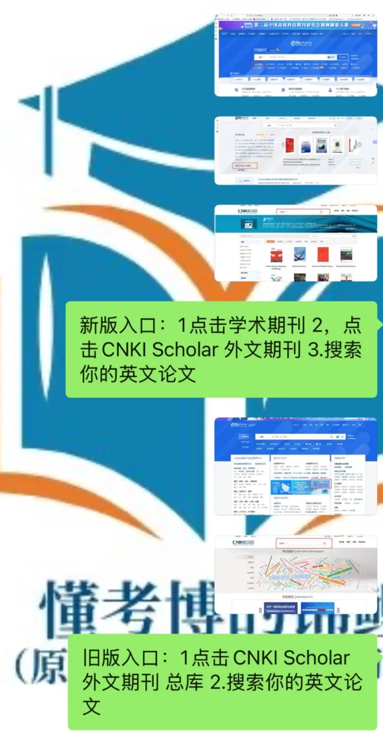 新版入口:1点击学术期刊 2,点击CNKI Scholar 外文期刊 3.搜索你的英文论文 旧版入口:1点击CNKI Scholar 外文期刊 总库 2.搜索你的英文论文