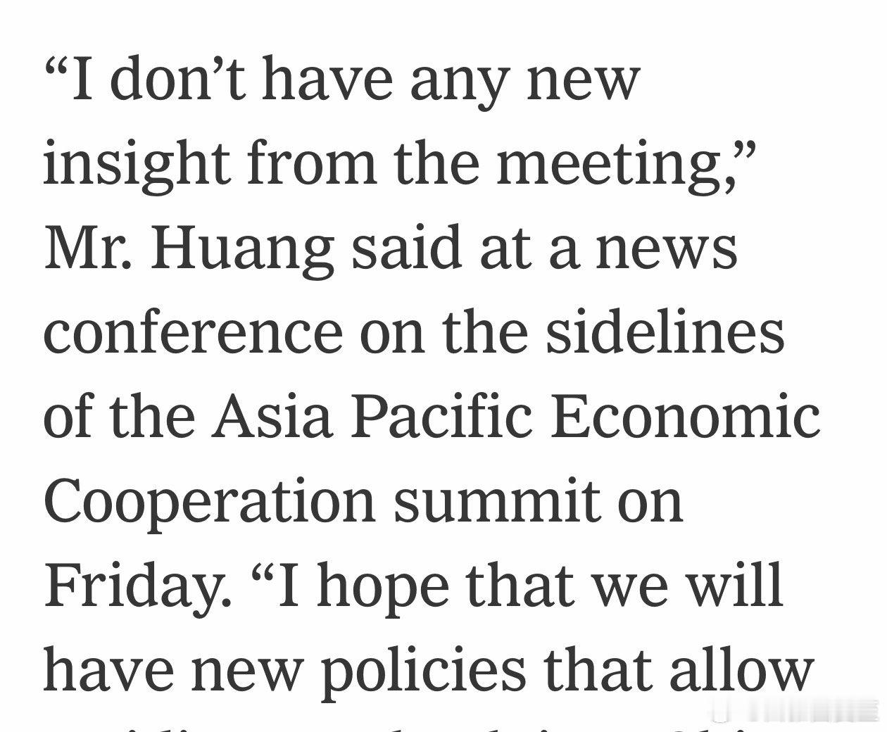 Huang在🇰🇷:关于会谈,没有新情况…我希望能有新政策,允许继续卖…目前没有