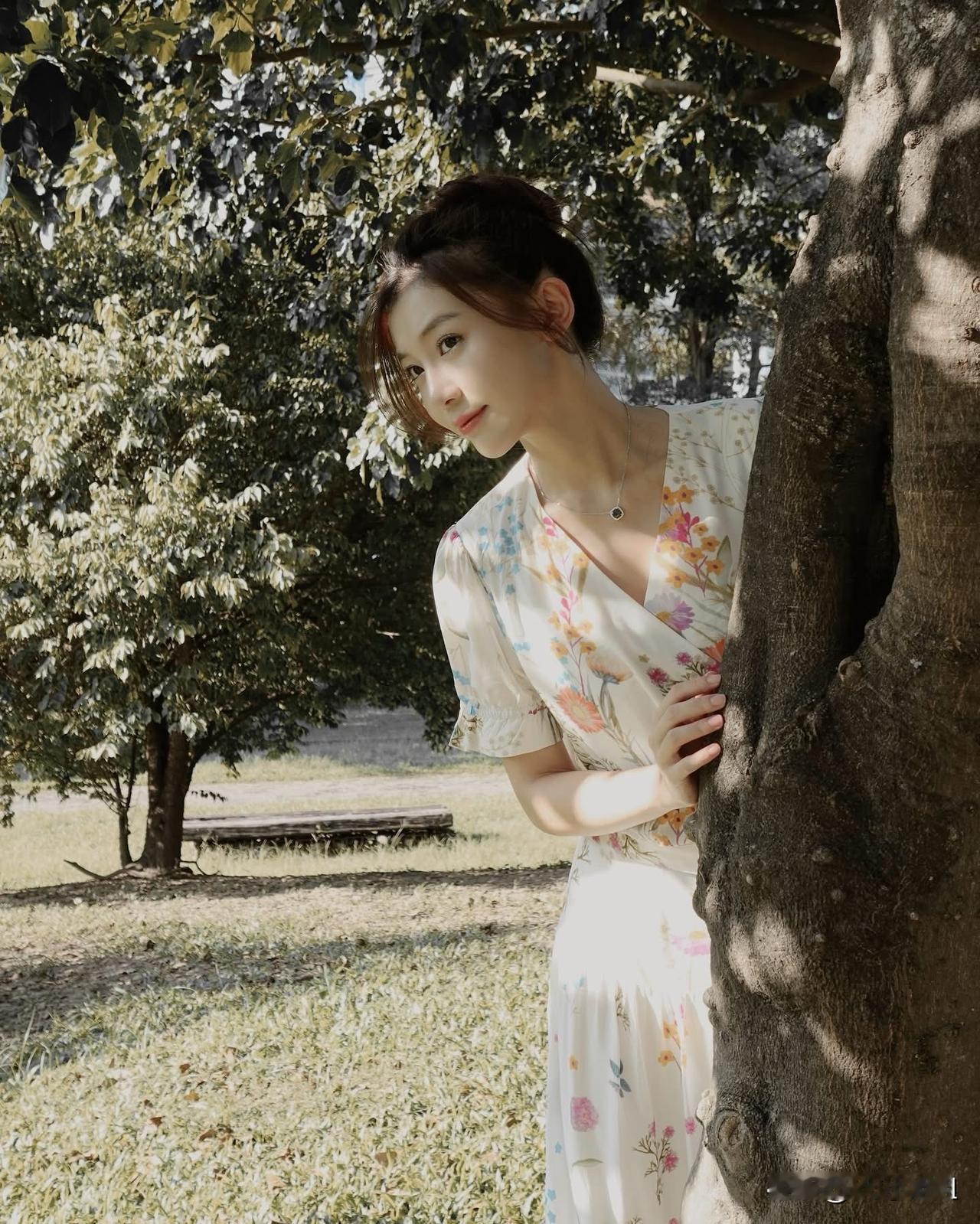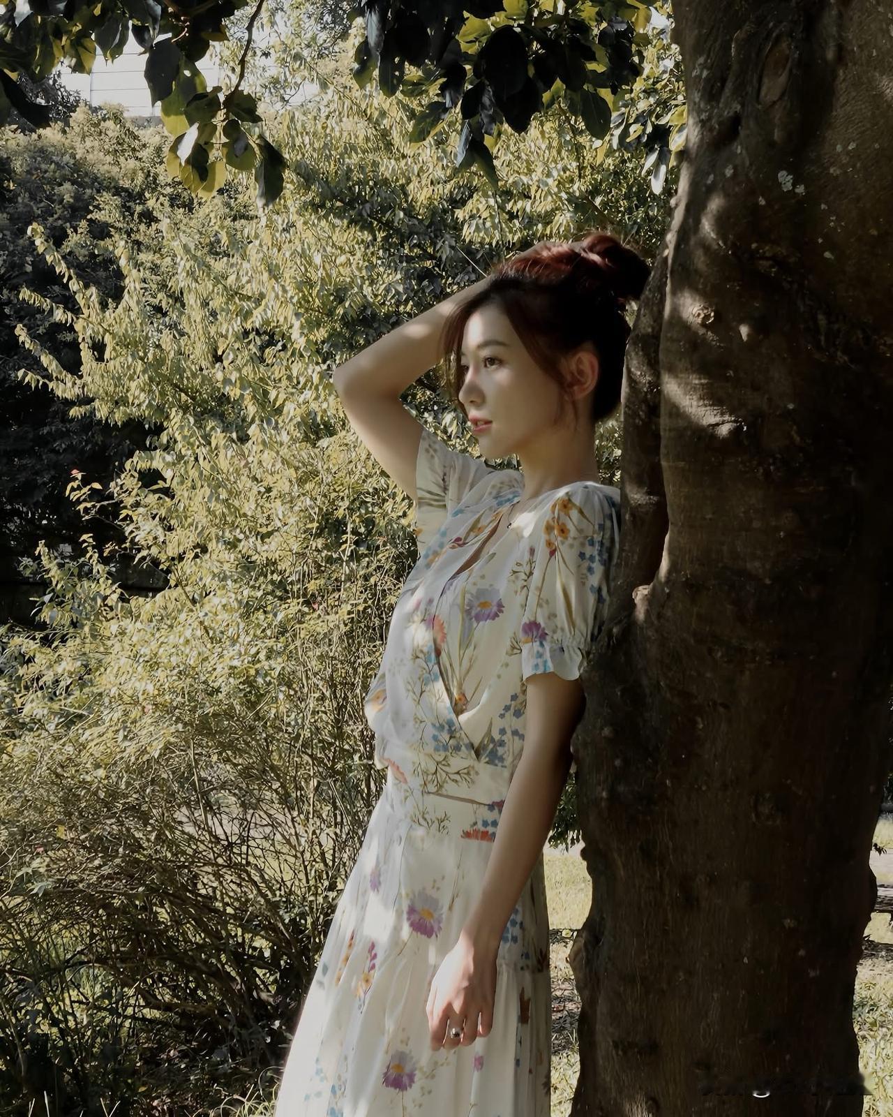 在树荫下,优雅地倚靠,感受自然的宁静与美好。气质穿搭怎么穿才恰到好处?