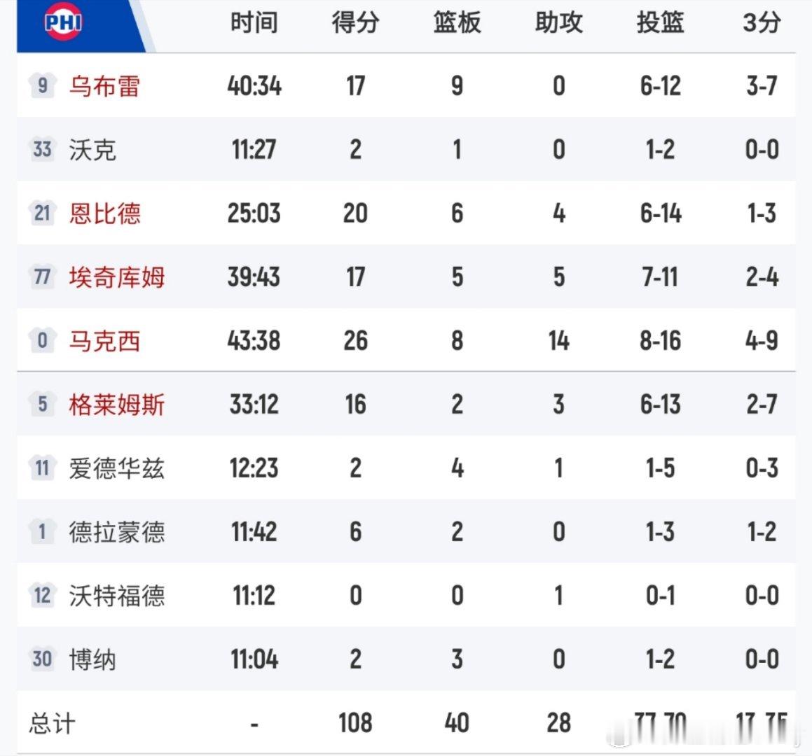 恩比德绝杀不中,76人大逆转失败,108-109不敌凯尔特人,赛季首负。