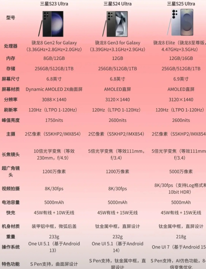 三星三代机皇 23年的s23,24年的s24 ,25年的s25。这三代大家都觉得哪一个好