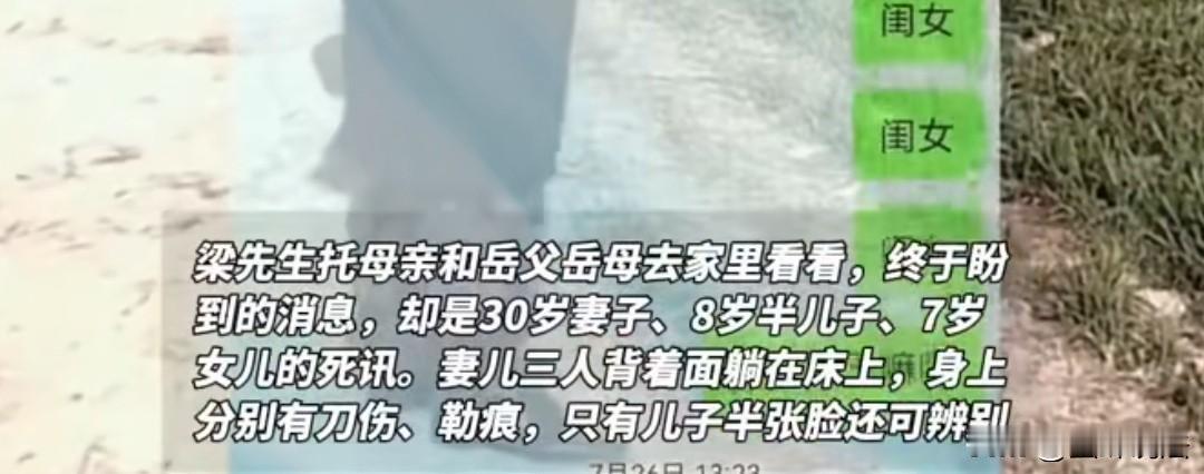 痛心!河南郑州,男子在外打工,联系家里的妻子怎么都联系不上,后来叫母亲和岳父岳母去家里看看,结果发现30岁妻子、8岁半儿子、7岁女儿三人背着面躺在床上,身上分别有刀伤、勒痕,只有儿子半张脸还可辨别,而凶手却是男子的发小。 梁先生为了给妻子和孩子更好的生活,忍受着离别之苦,从郑州来到湖北打工。 而他是一个非常顾家的男人,虽然远在外地,但几乎每天都会联系妻子嘘寒问暖。 7月25日那天,梁先生和妻子聊到了深夜才依依不舍说晚安。 7月26日早上5点多,梁先生一醒来记得有点事和妻子说,于是就给她发去了信息。 可妻子一直不回信息,他以为妻子可能忙。到11点左右的时候,他再次给妻子发去信息,还是石沉大海。 梁先生觉得有点奇怪,平时妻子再怎么忙,回信息都不会这么久的。 但梁先生并没有怀疑什么,只当这次是一个例外,后来继续给她发信息,连发了很多次都不见回。 直到下午一点多,梁先生发了很多信息都不见妻子回,他感觉不对劲,心里隐隐不安,猜测会不会出现什么意外,于是赶紧联系母亲和岳父岳母,让他们去家里看看。 然而梁先生的猜测是对的,可结果远远比他想象的残忍。 当时3老来到家里就感觉很冷,因为空调开到了16℃,而电视机还开着,他们来到卧室时,梁先生母亲隐隐约约感觉到不对,在岳母要求开灯时,梁先生母亲把她拉去门外。 当时梁先生妻儿三人背着面躺在床上,身上分别有刀伤、勒痕,只有儿子半张脸还可辨别,如果岳母看到肯定受不了,所以梁先生母亲才这么做。 得知噩耗的梁先生第一时间联系发小崔某,让他到家里看看,可他以各种理由推脱。 当时梁先生还很生气,可当务之急是赶紧回家,没有时间和崔某计较。 然而到高速路上的时候,梁先生又联系崔某,跟他说自己的妻儿呗杀害,当时崔某还很不可置信,说怎么可能。 梁先生没有多说什么,要求崔某赶紧回去,而崔某这一次没有推脱,他联系了梁先生的另外一个发小,还有舅家女婿,3人一起赶回去。 当时开车的是梁先生舅家的女婿,据梁先生另一个发小回忆,30公里的路程崔某抽了3包烟。 可谁也没有察觉有什么异样,因为崔某来到梁先生房子的楼下,还当着刑警的面打电话给两位先生,脸不红心不跳的,和正常人没有什么区别。 但令梁先生万万没有想到的是,就是自己信任的发小杀害自己的妻儿。 他实在是想不明白,崔某为何如此狠心,曾经两人关系是这么的铁。 俩人是一起长大的发小,而且曾经一起北漂5年,那时候梁先生每天给崔某带早饭,晚上又煮饭给他吃。 而且在此事发生之前,崔某也经常去梁先生家吃饭,还说喜欢他女儿,还开玩笑说要定娃娃亲。 悬不知如此一个人这么会伪装,此次的作案更像是早有预谋,他偷偷配了梁先生家的钥匙,在25号晚上已经在梁先生家附近寻找机会,直到26号凌晨潜入梁先生家里。 崔某此次疑为入室盗窃,带走了一些黄金首饰,而这些首饰已经找回。 至于他为什么这么做,怀疑是他欠有外债,进入梁先生家里盗窃时被发现,于是杀害了梁先生的妻儿。 但为何如此残忍,梁先生的妻儿没有一个有完整都身体,面目全非,梁先生妻子脸上划了10几刀,胸口、脖子、肚子、大腿、小腿以及胳膊全都有伤。 梁先生痛苦不已,对于崔某的行为,他表示必须要判死刑。 崔某的行为实在是丧心病狂,杀害3个鲜活的生命,必需付出代价。 《刑法》第二百三十二条规定:故意杀人的,处死刑、无期徒刑或者十年以上有期徒刑;情节较轻的,处三年以上十年以下有期徒刑。 崔某杀害3人,而且手段及其残忍,其行为非常恶劣,应当受到死刑刑罚。 《刑事诉讼法》第一百零一条规定:被害人由于被告人的犯罪行为而遭受物质损失的,在刑事诉讼过程中,有权提起附带民事诉讼。被害人死亡或者丧失行为能力的,被害人的法定代理人、近亲属有权提起附带民事诉讼。 崔某除了受到刑罚处罚之外,梁先生作为妻儿的亲属,其有权提起民事诉讼,要求崔某承担民事赔偿责任。 对于此事,您怎么看?