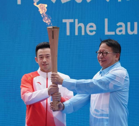 第十五届全国运动会香港赛区火炬接力传递今日,由50名火炬手参与,第一棒火炬手是香港乒乓球名将黄镇廷,第二棒是国家女子击剑队奥运冠军孙一文,霍震霆担任第16棒火炬手,跑最后一棒的香港女子剑击运动员佘缮妡。