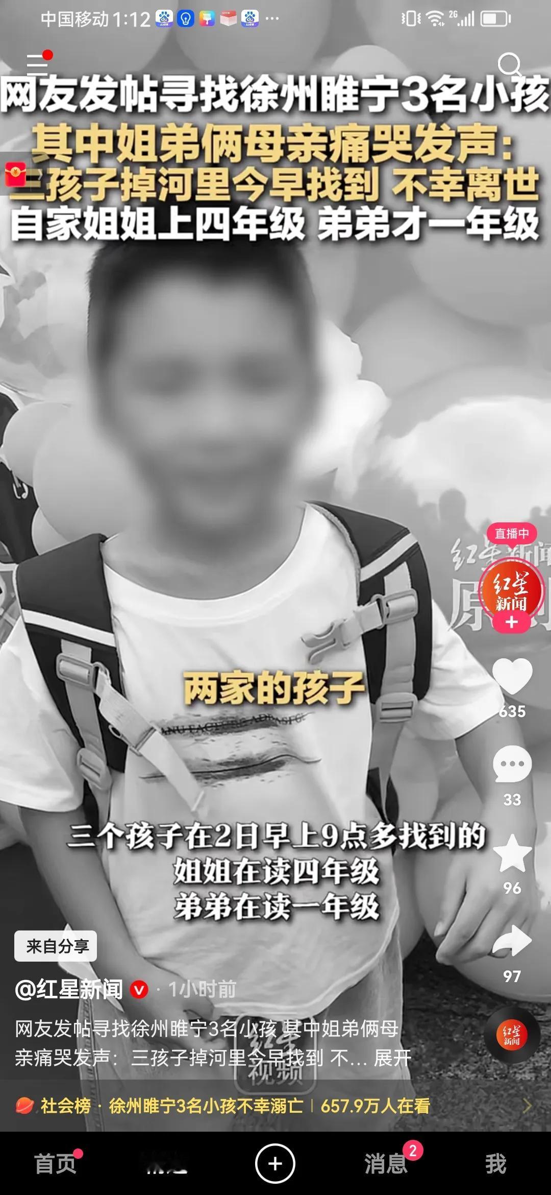 徐州睢宁又发生悲剧了,3个孩子掉河里不幸溺亡。姐弟俩一个四年级,一个一年级,还有一个是他们的小伙伴。 事情发生在睢宁,一个小男孩放学了,跟小伙伴一起去河边玩耍。 小女孩是姐弟俩的姐姐,她放学回家没看到弟弟俩,就出去找,没想到也掉进河里了,三个孩子都不幸溺亡。 看到这里,真的心痛不已,作为父母,谁不疼爱自己的孩子啊! 可惜了姐弟俩年纪那么小,一个才6岁,一个9岁。 现在很多家长都觉得孩子大了可以自己照顾自己了,其实根本就不行,四年级的孩子也需要大人的照顾,更何况是一年级的孩子。 河边没有护栏,家长一时的大意,孩子就掉进河里了,幸好没有其他的孩子落水,不果不堪设想。 每年的夏季溺水事故特别多,因为天气热,孩子们都喜欢去河里游泳玩水,可是家长就不知道孩子们在水里玩耍时就会发生溺水事故。 家长一定要看好自己的孩子,不要抱有侥幸心理,一次的疏忽大意就可能造成终生的遗憾。 还是老话,希望有事发生在别人身上,可是现在的安全隐患还是太多了,应该怎么更好的保护孩子呢? 如何预防溺水事故的发生呢? 麻烦看官老爷们右上角点击一下“关注”,既方便您进行讨论和分享,又能给您带来不一样的参与感,感谢您的支持!