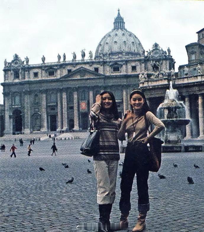 1977年,23岁的林青霞与24岁的胡因梦同游意大利的照片,没看错!这是40几年前的时尚