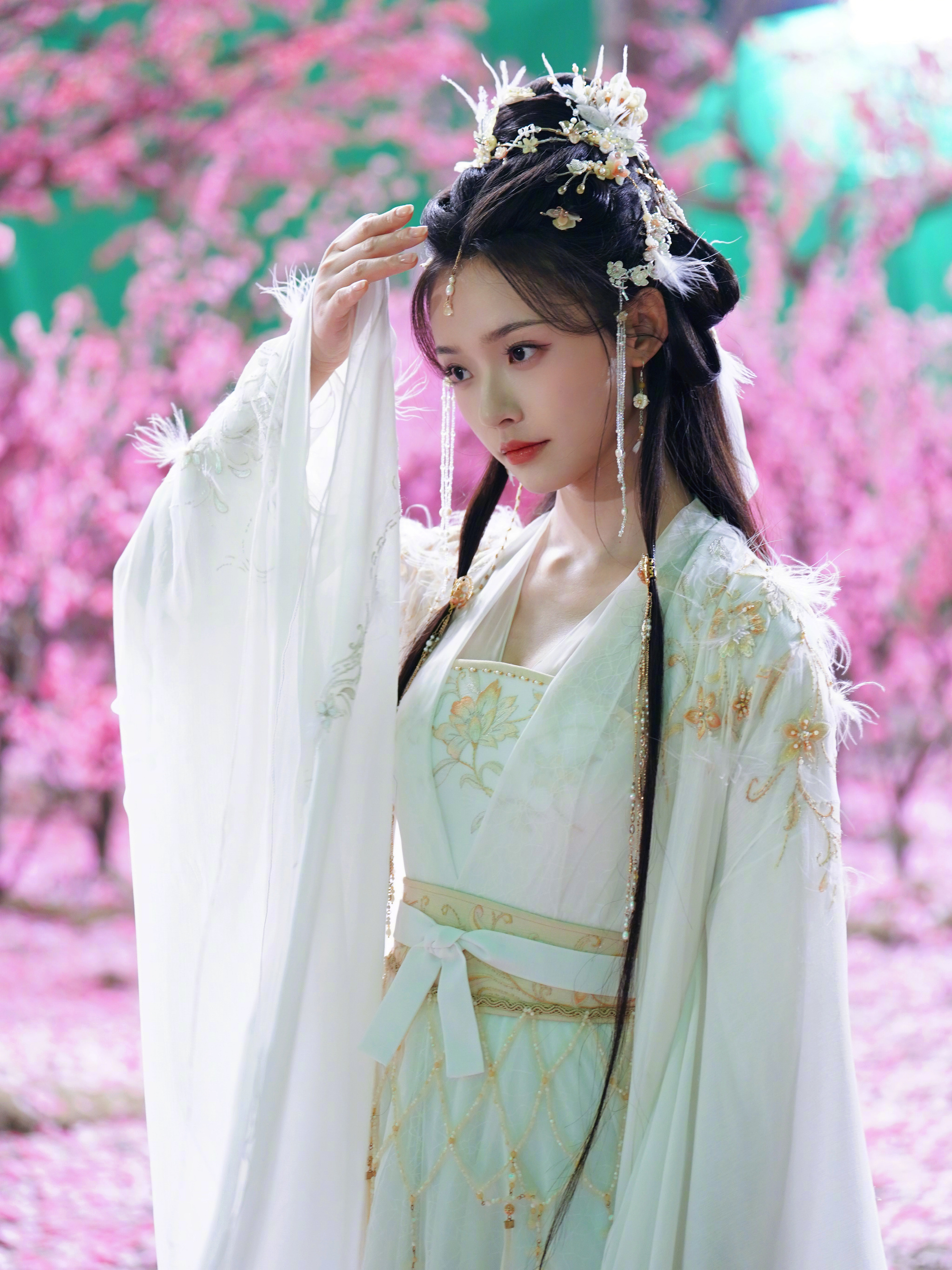 林允 那年杏花微雨 林允这剧照太美了!《水龙吟》阿谁穿绣金白衣,珠花羽毛头饰精致到骨子里,流苏耳饰随动作轻摆,漫天杏花当背景,粉瓣簌簌落,美得像从仙境走出来的,一眼难忘!
