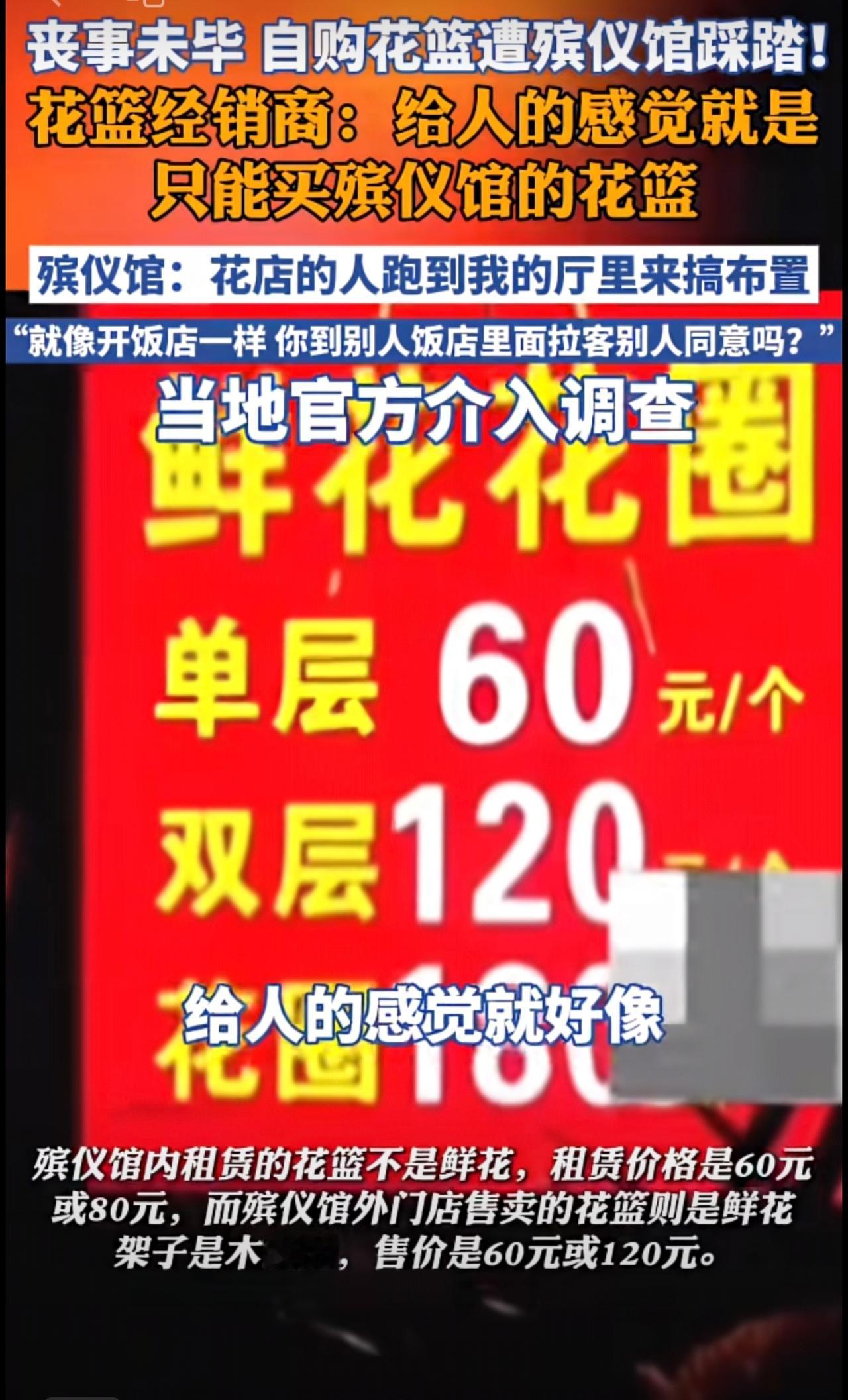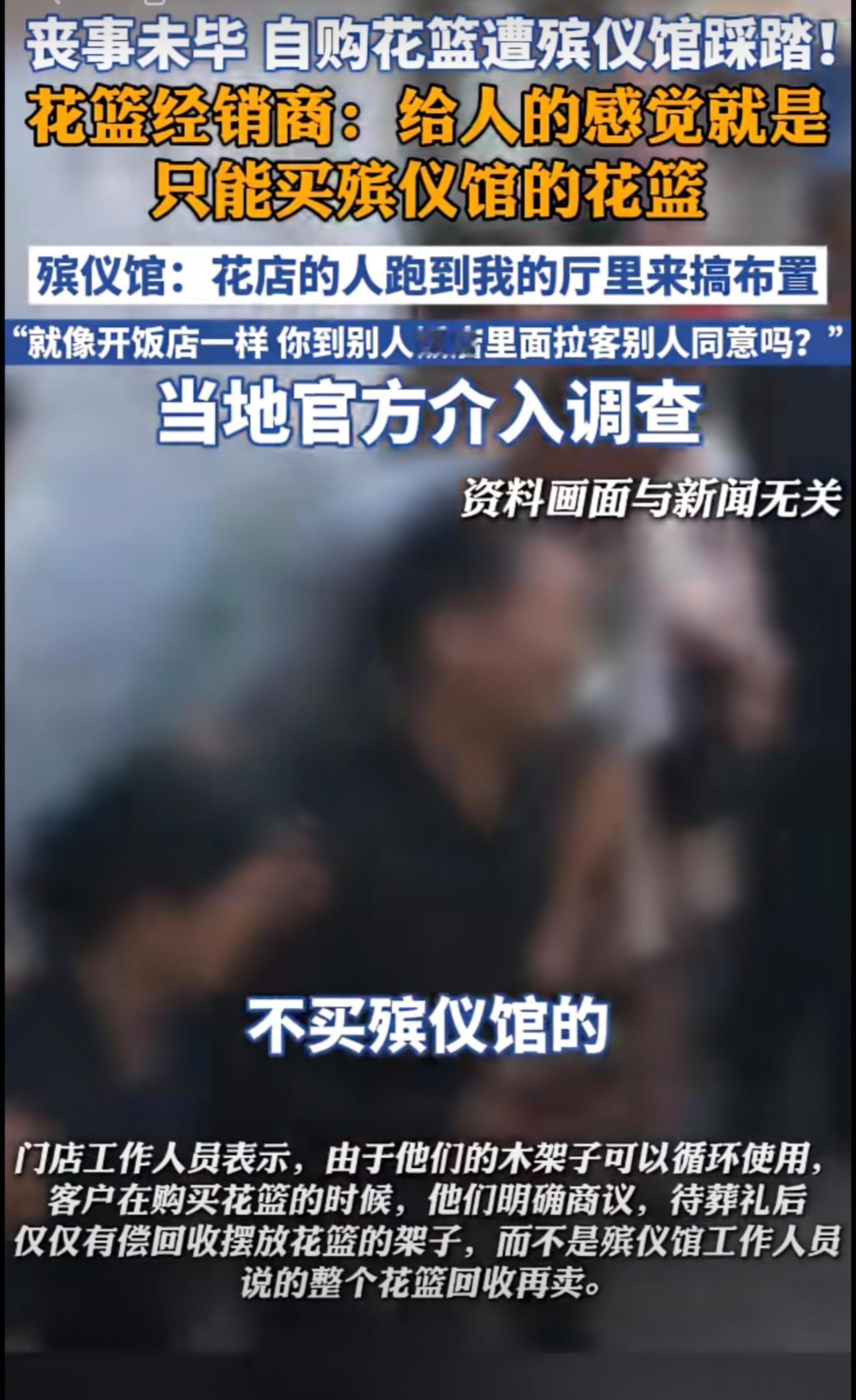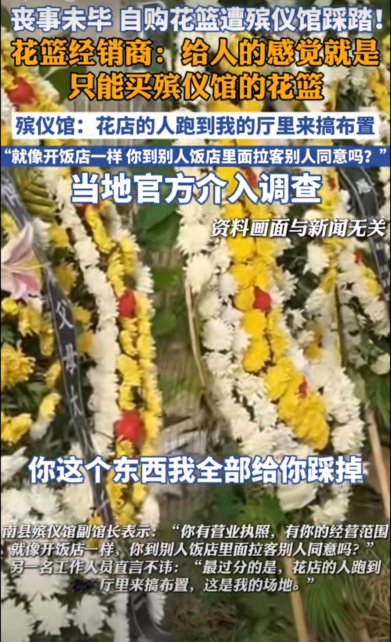 丧事未毕,自购花篮遭踩踏!殡仪馆回应,当地民政、发改以及市场监管部门正就此事进行