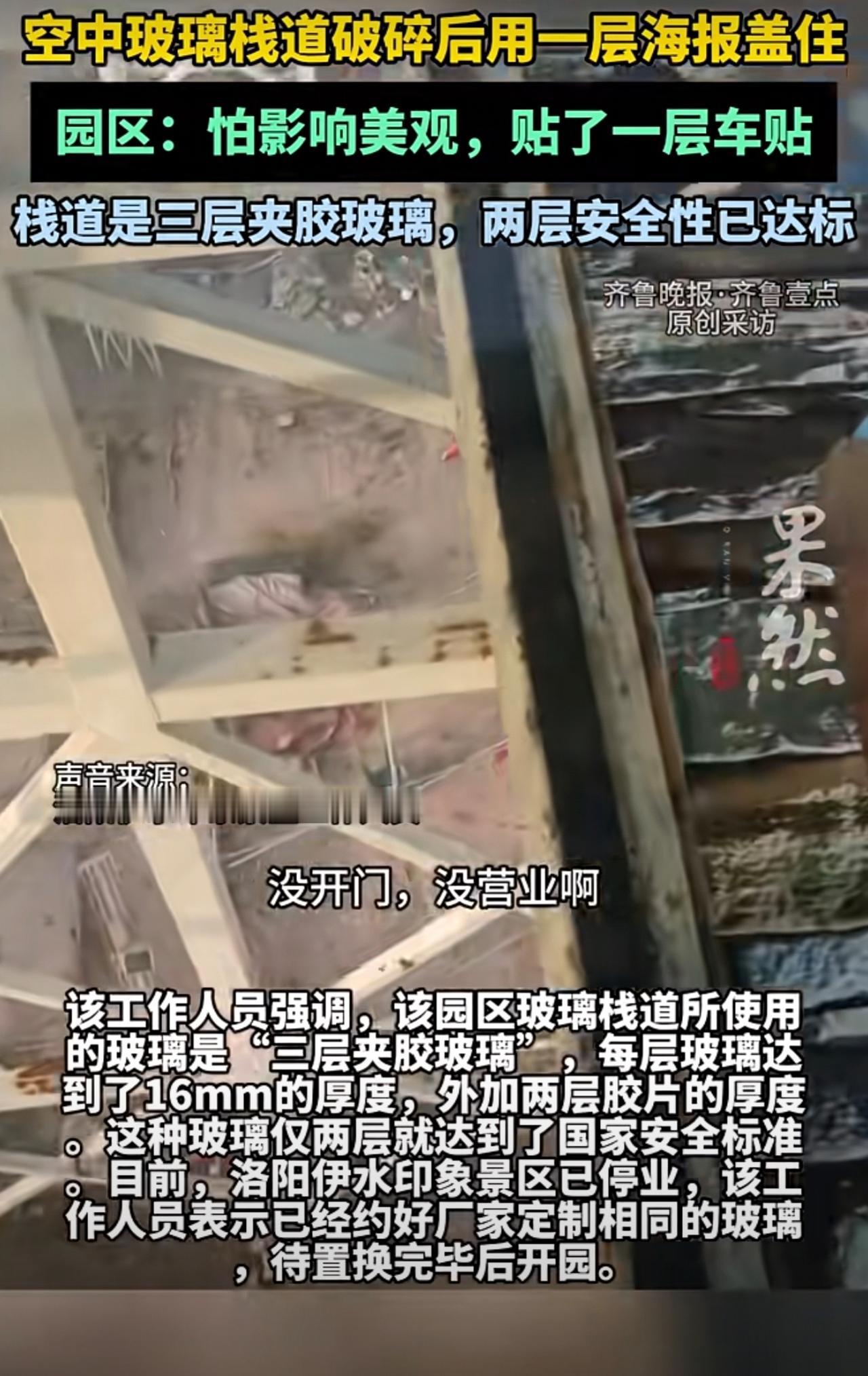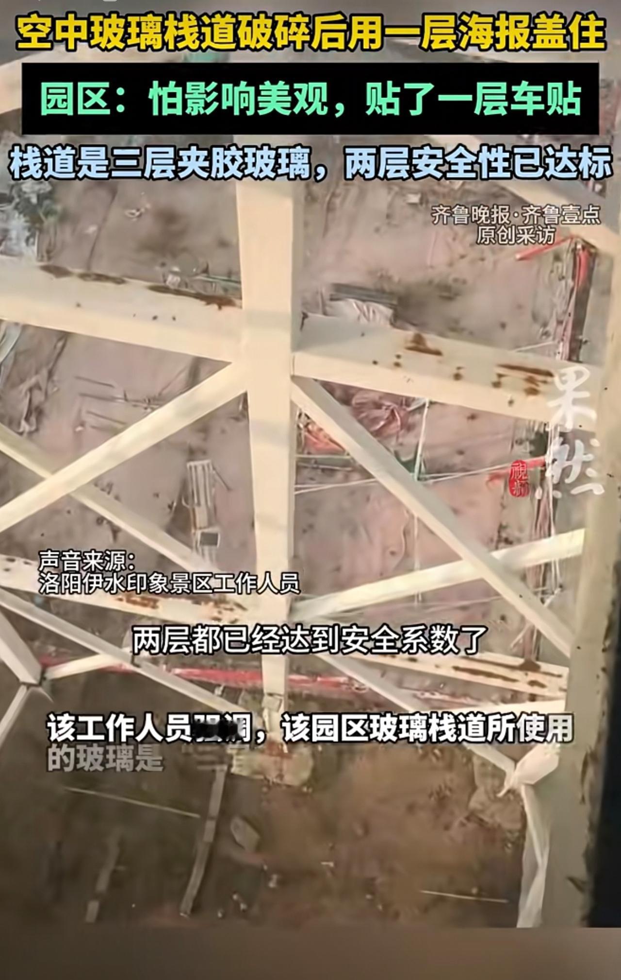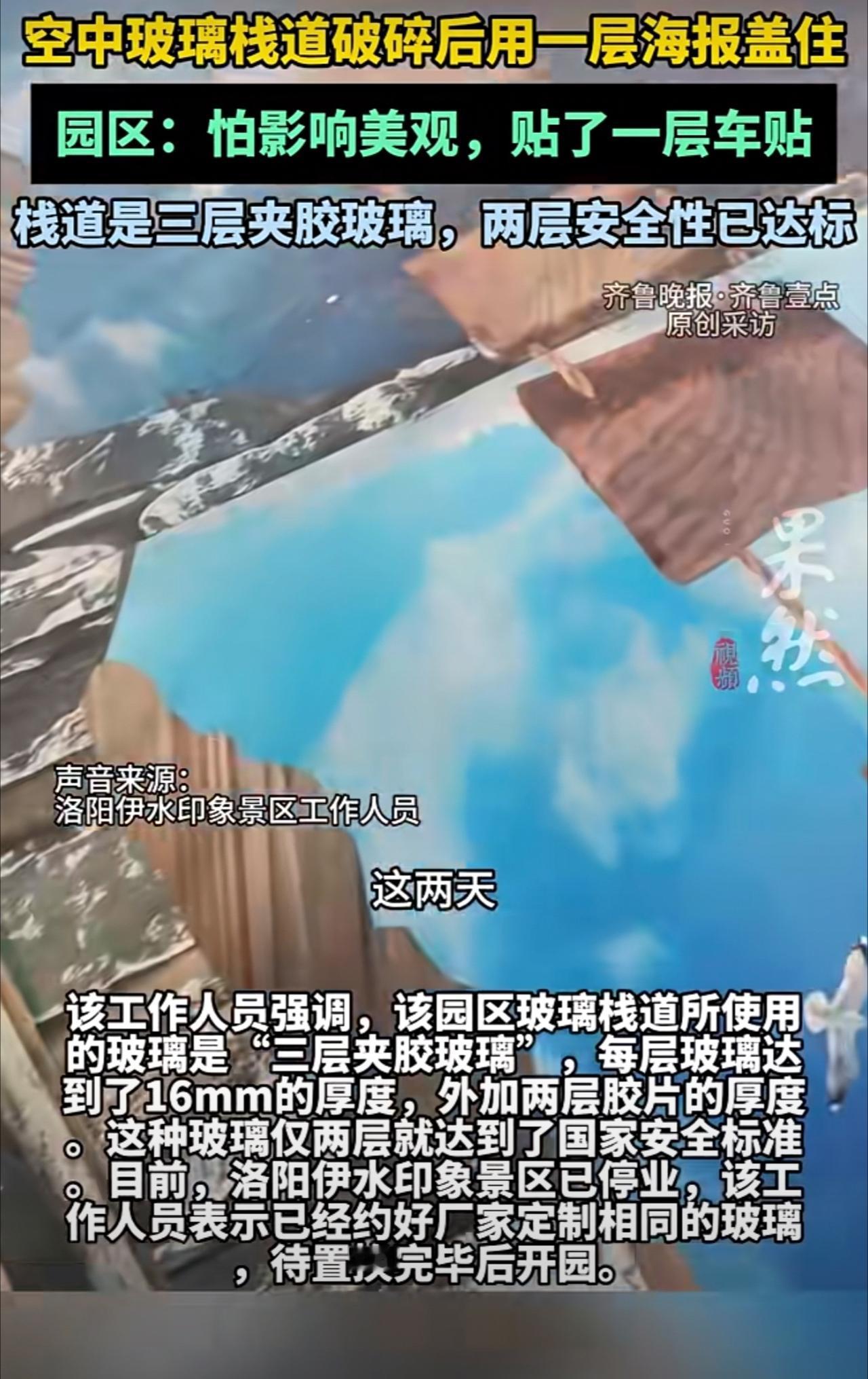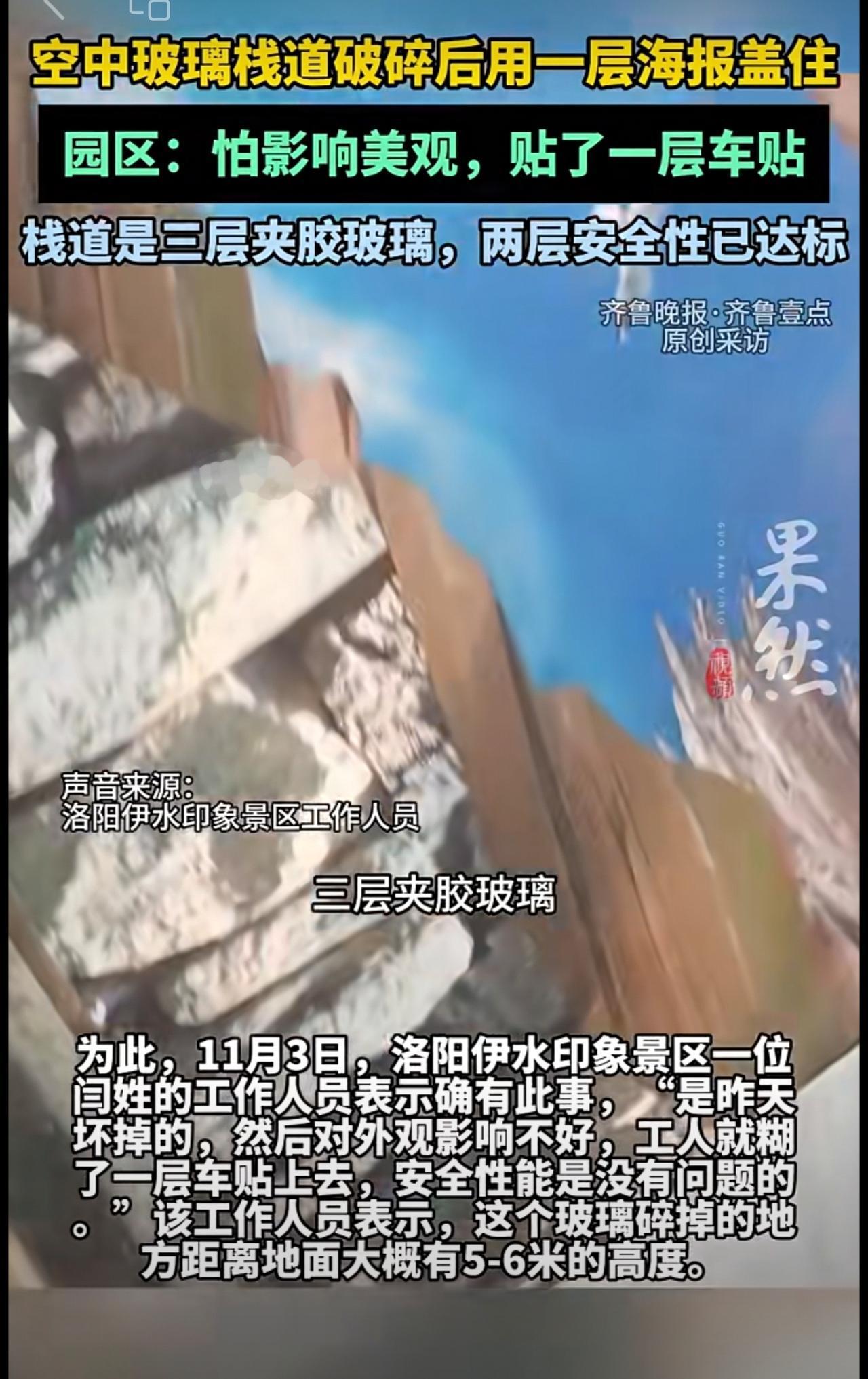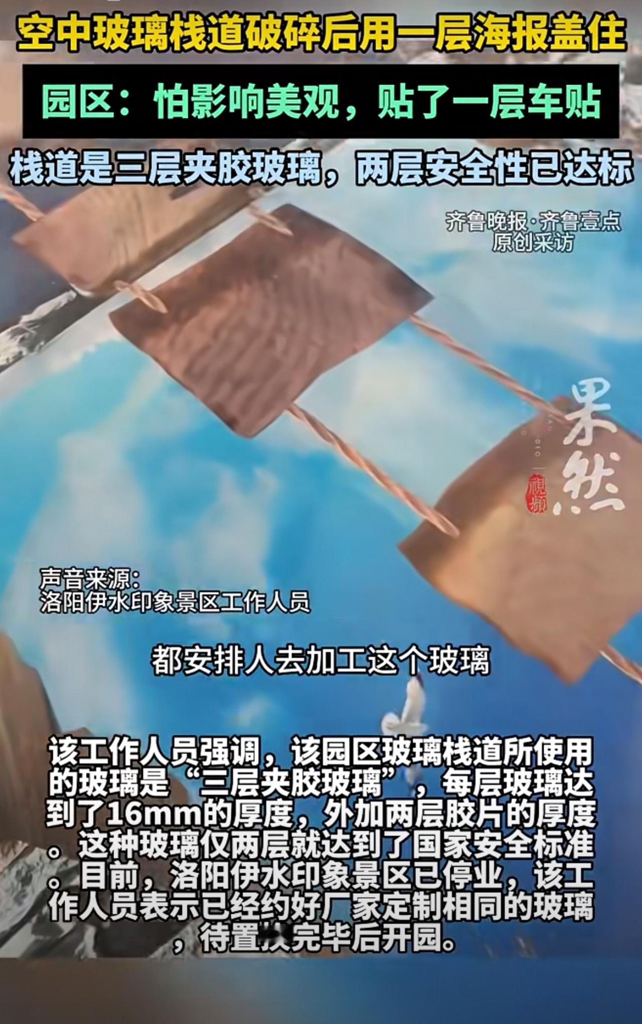 空中玻璃栈道破碎后用一层海报盖住?园区:怕影响美观,贴了一层车贴