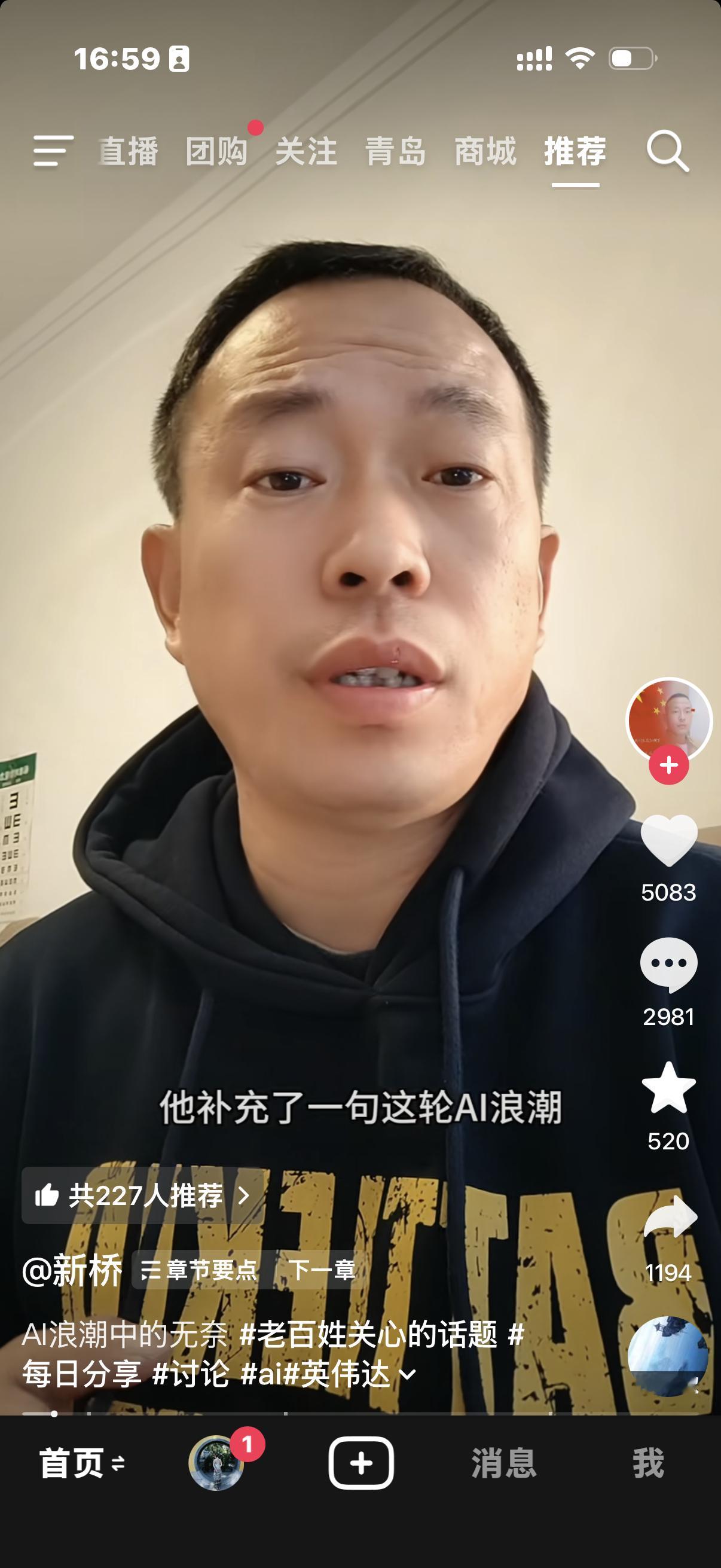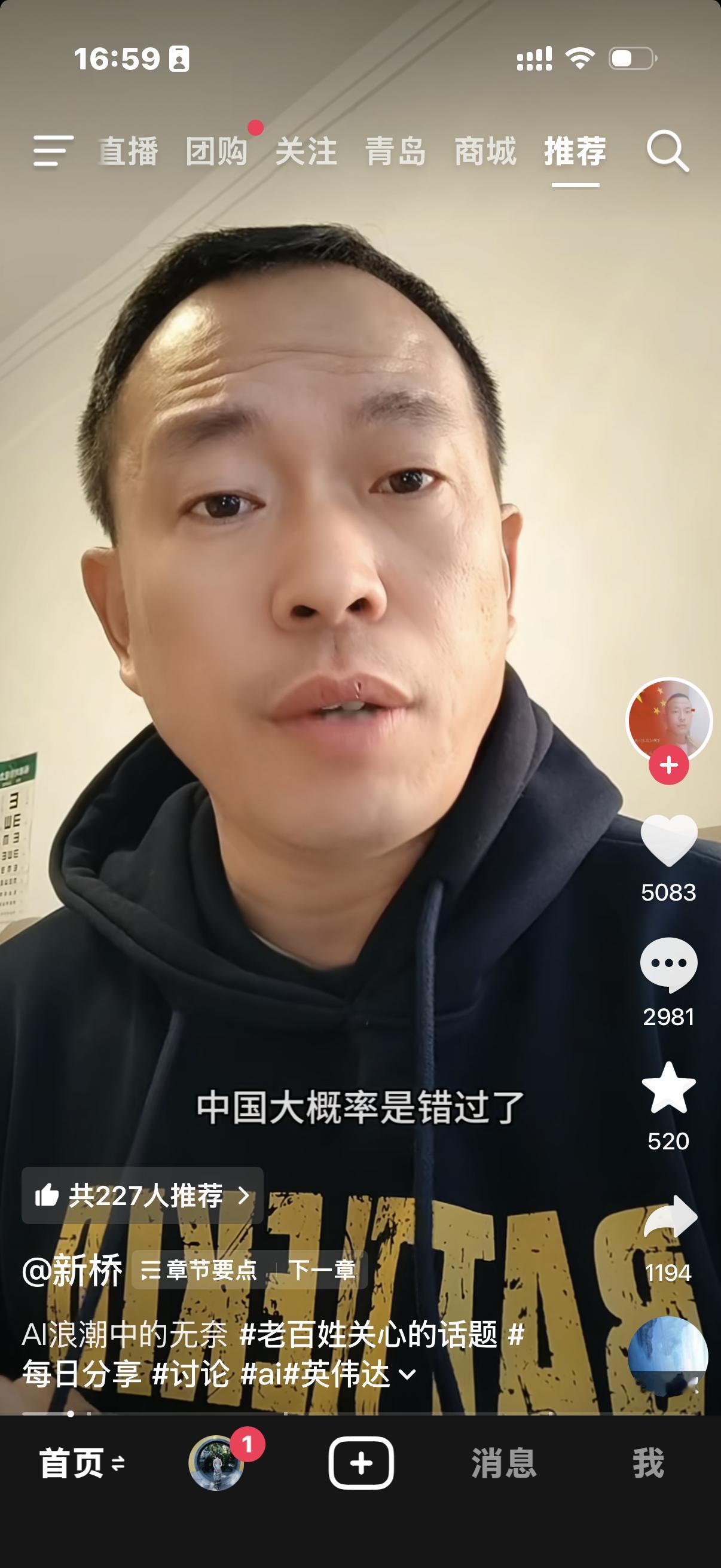 今天刷抖音看到一个视频说,英伟达黄仁勋说中国已经赶不上AI浪潮了,因为AI需要海量的数据和信息来喂给它,而我们的AI只能在我们的小圈子里汲取信息,算力可以用花钱和技术来解决,但是信息不行……[晕]