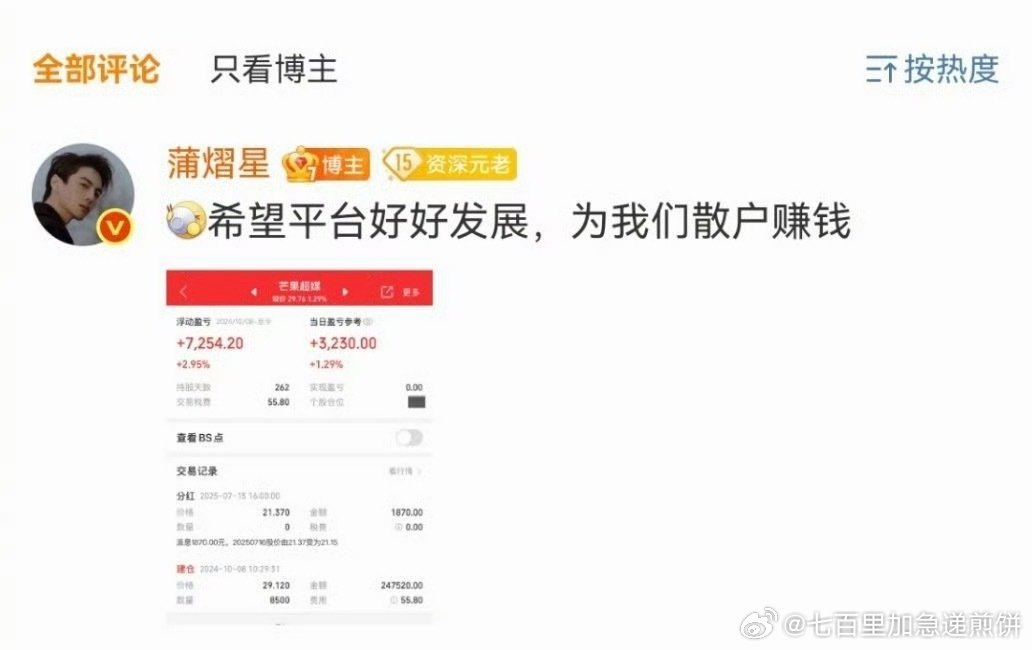 蒲熠星回应自己高价通告费疑似被fs,说他非常看好芒果这个平台、因为买了芒果超媒的股票(这个回应感觉他好骄傲