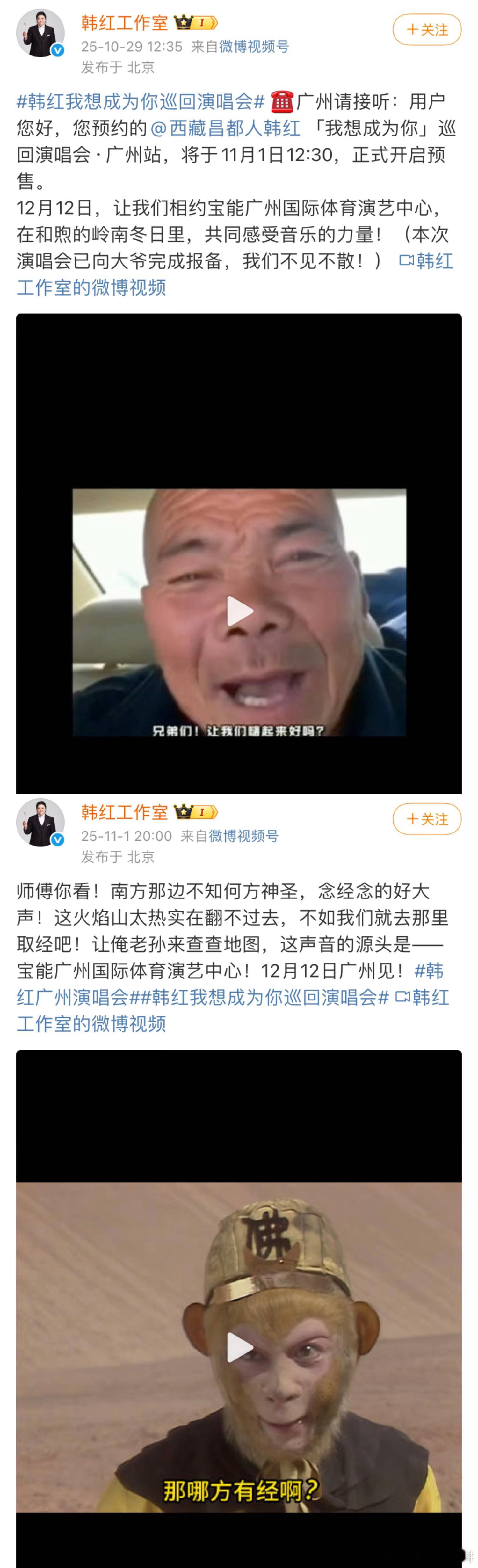 谁来把韩红工作室网线拔了 韩红工作室这抽象剪辑太上头!演唱会整出西游记转场、金莲唱经文,山东话talking配emoji,直接被种草广州巡演现场!