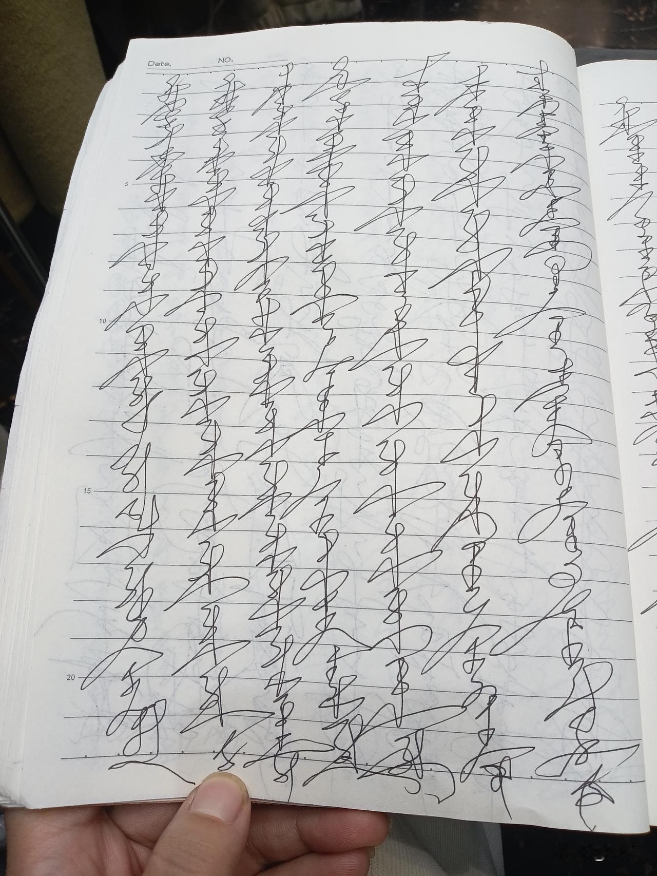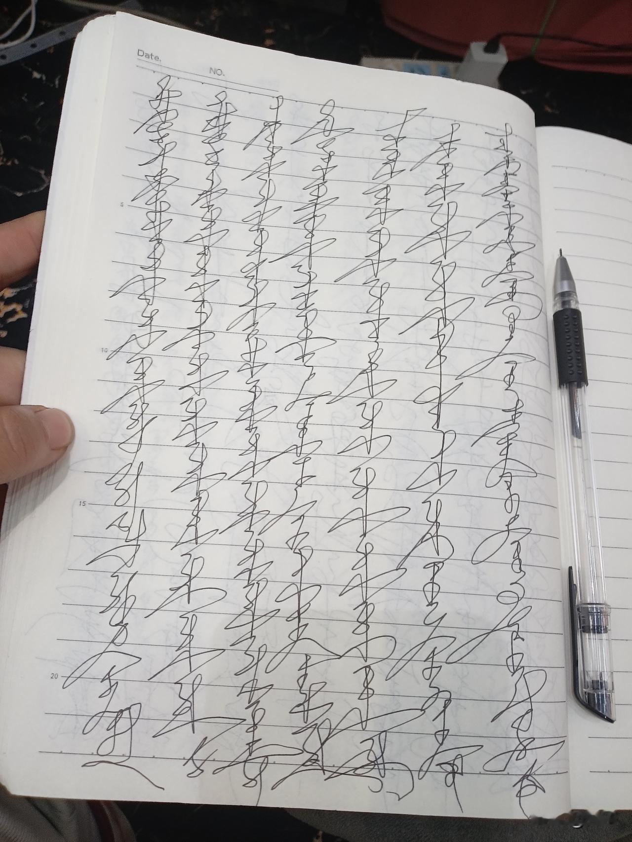 每天写2页,自己都不认识也不知道自己写的什么,天天字体都有变化,一天一个样这也太
