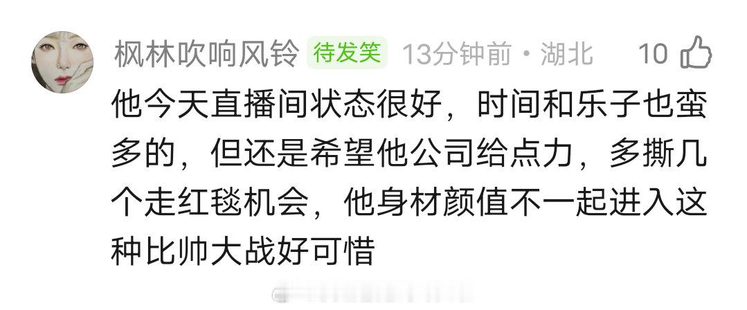 网友说比起去李佳琦直播间,敖瑞鹏应该多争取几个走红毯的机会,以他的身高颜值不参加内娱比帅大战好可惜。。。