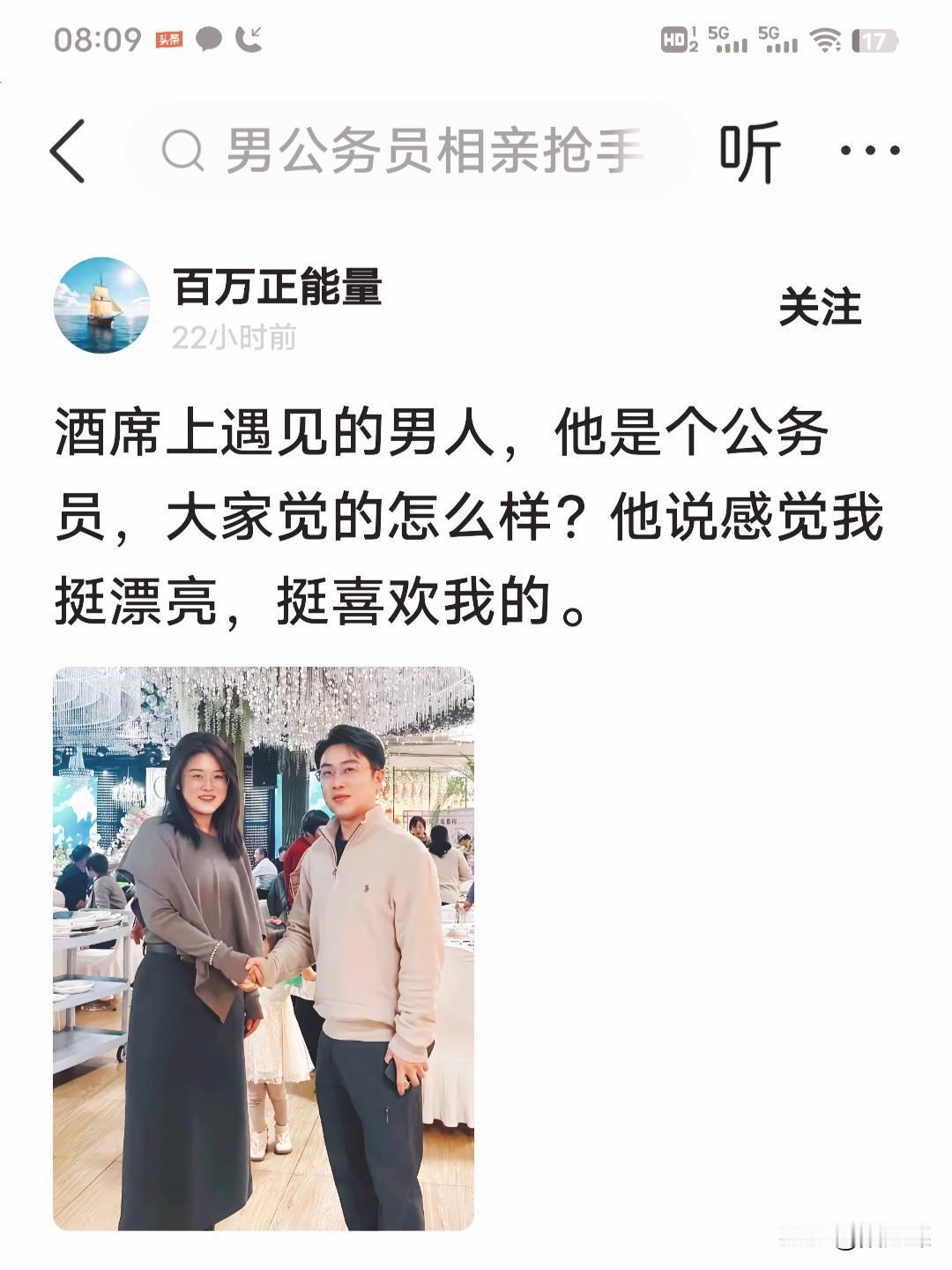 说实话,你俩可谓郎才女貌。特别是这位小伙子那是一脸的官相,一看就是那种为人民服务的好同志。瞧这小金丝眼镜,将来最起码是正厅往上。 大家觉得他俩有夫妻相吗? (图片来自网络) 体制内男士