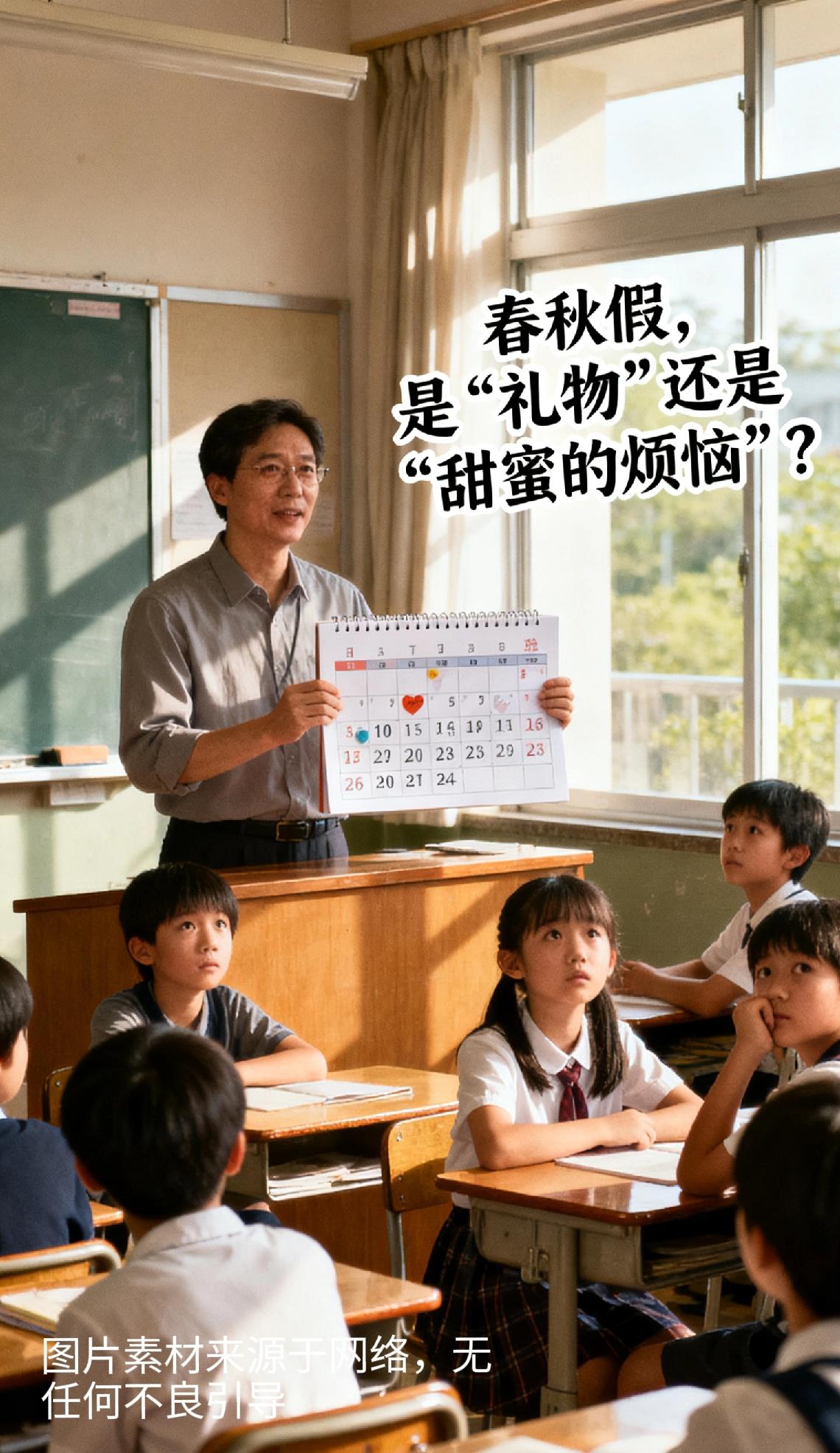 春秋假,是"礼物"还是"甜蜜的烦恼"? 广东佛山一所小学的教室里,孩子们的欢呼声快掀翻了屋顶。"秋假加上周末,刚好去北京爬长城!"一张稚嫩的脸庞上满是期待。 今年,"春秋假"这个词火了。从中央到地方,政策暖风频吹,浙江、湖北、广东等多地纷纷响应,鼓励探索设置中小学春秋假。 这听起来是给孩子和家长们送上的一份"季节的礼物",让孩子们能在春光秋色里走出课堂,拥抱自然。 但这份"礼物"真的人人都开心吗?当双职工家长们愁眉苦脸地计算着如何在工作和照看孩子之间找平衡时,我们不得不思考:这份"季节的礼物",到底该如何送得贴心、送得实在? 正文:春秋假背后的大文章与现实挑战 这项看似简单的假期调整,背后其实是对教育本质的深刻反思。古人说"莫放春秋佳日去",春秋两季正是亲近自然、感受生命的黄金时期。 春日草木生发,秋日硕果累累,这些生动的教育场景,是书本无法替代的。春秋假的推行,正是想把"读万卷书"和"行万里路"结合起来,为素质教育开辟新路径。 从经济角度看,它也能有效分流节假日旅游压力,激活"错峰消费"的潜力。 然而,理想很丰满,现实却很骨感。这项政策一出台,立刻戳中了无数家庭的痛点。 最直接的矛盾来自双职工家庭。一位家长的心声很有代表性:"我不希望有这个假期,孩子没人看护,午饭都是问题,对我们来讲,真的不合适。" 这并非个例。孩子独自在家,不仅存在安全隐患,还可能沉迷电子产品,反而违背了放假的初衷。 老师们也有顾虑。假期打乱了教学节奏,部分学生因家庭条件限制无法出游,可能会在返校后产生心理落差。 一些家长请假困难,只能选择付费托管,这无疑又增加了养育成本。一时间,春秋假从人人叫好的"香饽饽",变成了让部分家庭头疼的"甜蜜的烦恼"。 结语:让假期回归育人初心,需要多方协同发力 一项好政策要办好,关键在于落地执行时能否解决实际问题。春秋假不是"一放了之",更考验政府、学校和社会的协同能力。 杭州的经验值得借鉴。这座推行春秋假多年的城市,并没有让家长焦虑,反而赢得了认可。 关键就在于学校提供了高质量的假期托管服务,把"托底"责任扛了起来,让家长安心上班,孩子在学校也能参加有意义的活动。 恩施州的实践则充满了乡土智慧。利用当地农业特色,学校组织学生在春假参与"春耕农忙",在秋假体验"秋收劳动"。 这不仅解决了看护问题,更让孩子在劳动中培养了节约意识和生活能力,真正实现了教育与生活的融合。 从新疆的"雪假"到深圳的"我的假期我设计",各地的探索都在指向一个核心:假期的价值,在于育人。 它可以是田间地头的劳动课,是文博场馆的历史课,也可以是增进感情的亲子课。 这份"季节的礼物"要送好,就不能只停留在增加假期天数上。它需要政府完善配套政策,需要学校提升服务水平,也需要社会提供更多元的实践平台。 当我们把假期从简单的"休息"变成丰富的"成长",当每个孩子都能在假期里长见识、明事理、强本领,这份礼物才算真正送到了孩子们的心坎里,这才是教育本该有的模样。 希望这篇创作能符合你的要求。文章通过层层递进的分析,既解答了公众的疑惑,也传递了更理性、更深入的观点。如果需要,我还可以为你生成一份文章传播策略,告诉你如何起标题、选话题标签,让它在头条上获得更好的流量。需要吗?