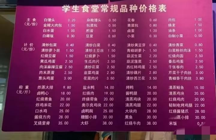 南京大学食堂有帝王蟹我不惊讶, 帝王蟹卖999元一份我也不吃惊, 唯一让我惊讶的这个学校居然1块钱可以吃一顿早饭! 近日,有网友晒出南京大学食堂退出了帝王蟹,南京本来就靠近阳澄湖,阳澄湖大闸蟹是每个爱吃螃蟹秋天都想吃到美食,学校为了这些的“吃货们”,在学校也能吃到大闸蟹,于是就有了这道菜,我觉得挺好的。 都说999元大闸蟹太贵了,普通家庭的孩子也不会为了一只螃蟹把一个月生活费花掉,这本来就是大家自己选择,可吃可不吃。 但是有一点却让我太感动了,南京大学的食堂太为普通家庭考虑了,网友晒出了南京大学某食堂菜价,看到他们学校的馒头2毛,菜包5毛,稀饭2毛,还有这样的良心价。 相当于一顿早饭想要吃饱,一块钱都够了,这年头什么都在涨价,唯独没有变的是学校对学生的这种关怀。 大家吃过这么便宜食堂吗?